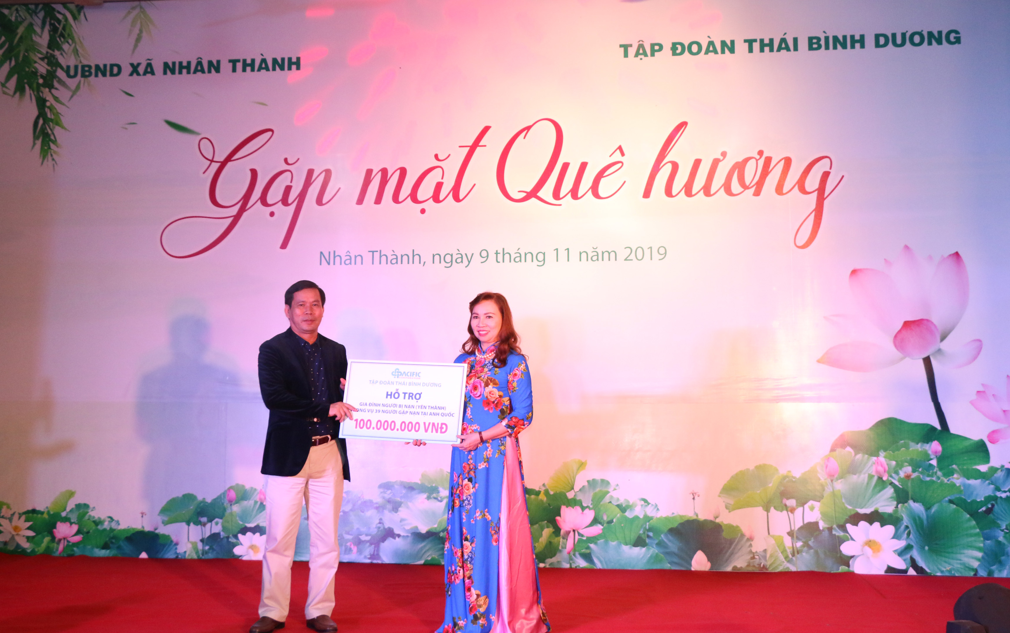 Trong số 39 nạn nhân tử vong trong container ở Anh Quốc gây rúng động dư động trong nước và quốc tế những ngày qua, có một số con em huyện Yên Thành. Trước sự mất mát to lớn đó, Tập đoàn Thái Bình Dương gửi lời chia buồn sau sắc đến gia quyến những người đã mất trong sự kiện nói trên và trao số tiền 100 triệu đến gia đình các nạn nhân qua đại diện huyện Yên Thành.