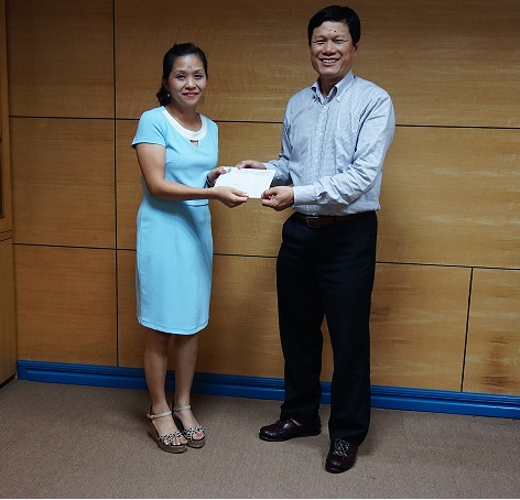 Đại diện Công đoàn Công ty trao quà cho ông Lê Văn Phương - Tổng Giám đốc là con liệt sĩ