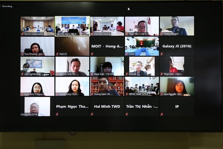 Các đại biểu tham gia Gặp gỡ hữu nghị Việt Nam - Cuba năm 2021 tại các điểm cầu trực tuyến. (Ảnh: Tuấn Việt)