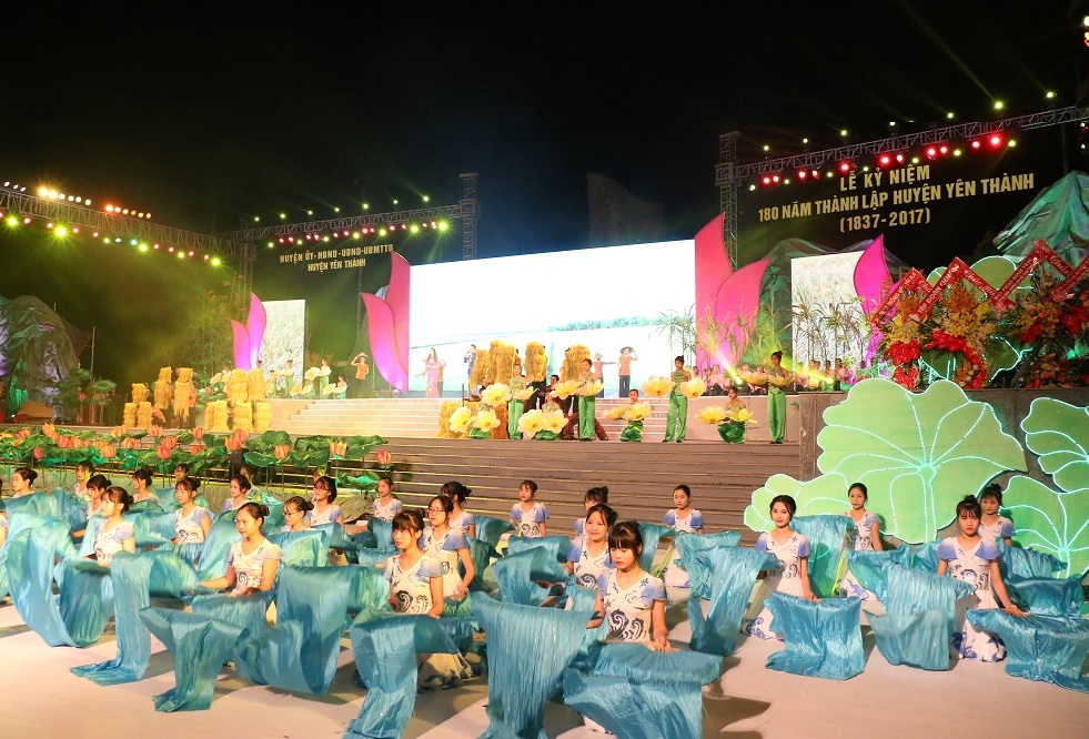 Chương trình nghệ thuật với chủ đề “Yên Thành lung linh miền đất mở” với phần tham gia biểu diễn của 300 diễn viên, nghệ sỹ, được dàn dựng công phu, đặc sắc.