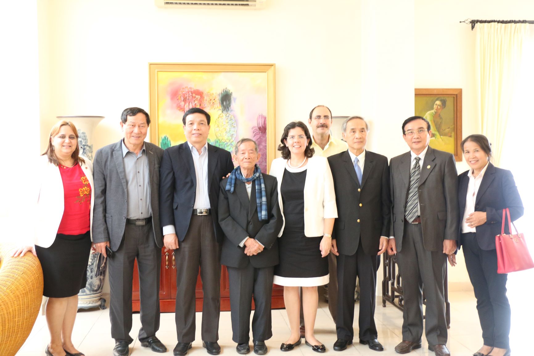 Đại sứ và phó Đại sứ Đại sứ quán Cuba tại Việt Nam chụp ảnh kỷ niệm với Ban biên soạn sách "Fidel với Việt Nam - những kỷ niệm không quên"