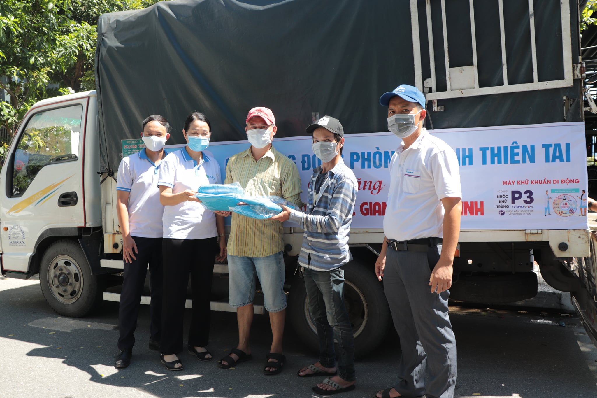 Máy khử khuẩn di động tự động do Nhóm 687_một nhóm thiện nguyện tại Đà Nẵng chế tạo và lắp ráp. Thiết bị tích hợp hệ thống cảm biến tự động hạn chế tiếp xúc và thiết lập thời gian phun sương hợp lý, phù hợp với nhu cầu sử dụng tại các bệnh viện và các khu cách ly. Giá trị thành tiền của 20 thiết bị khử khuẩn di động là 188.500.000 đồng. Món quà này là sự đóng góp của tập thể Hội đồng quản lý, Ban Giám đốc, cán bộ nhân viên và nguồn tiết kiệm chi phí quản lý của Quỹ Cộng đồng phòng tránh thiên tai.