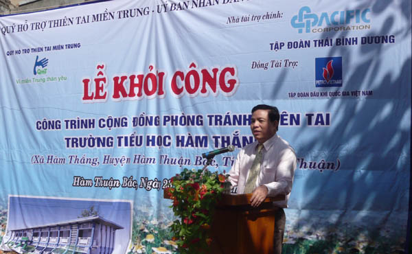 Ông Phan Văn Quý, Phó Chủ tịch Hội đồng quản lý Quỹ cộng đồng phòng tránh thiên tai, Chủ tịch HĐQT Tập đoàn Thái Bình Dương phát biểu tại Lễ khởi công một công trình cộng đồng phòng tránh thiên tai tại Bình Thuận