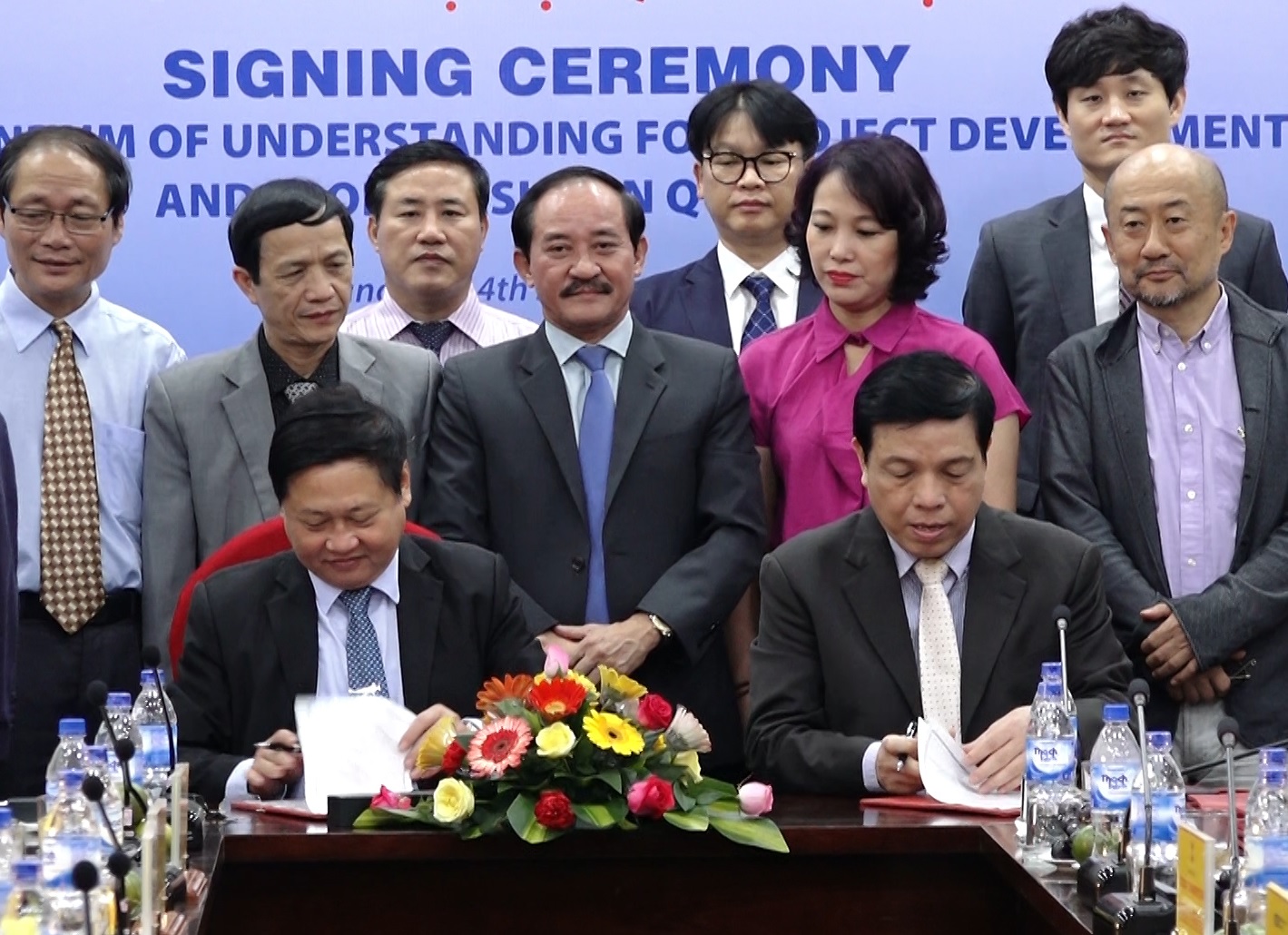 Ông Văn Ngọc Lãm, Chủ tịch UBND thị xã Quảng Trị (áo trắng, ngồi ngoài cùng), ông Phan Văn Quý, Chủ tịch HĐQT Công ty cổ phần Tập đoàn Thái Bình Dương, ông Yusaku Ichimura, Chủ tịch Công ty TNHH Nihon Sekkei Việt Nam ký kết Thỏa thuận về tài trợ lập Quy hoạch xây dựng Thị xã – Thành cổ Quảng Trị trở thành Thành phố Hòa Bình.