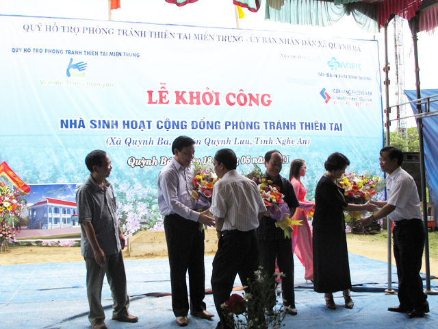 Được sự giúp đỡ vận động kinh phí để xây dựng của Quỹ Hỗ trợ phòng tránh thiên tai miền Trung và sự quan tâm hỗ trợ của các nhà tài trợ, công trình đã được khởi công xây dựng. Thay mặt đơn vị hưởng lợi công trình, Chủ tịch UBND xã Quỳnh Bá, huyện Quỳnh Lưu cảm ơn sâu sắc đến Quỹ Hỗ trợ phòng tránh thiên tai miền Trung và các nhà tài trợ.