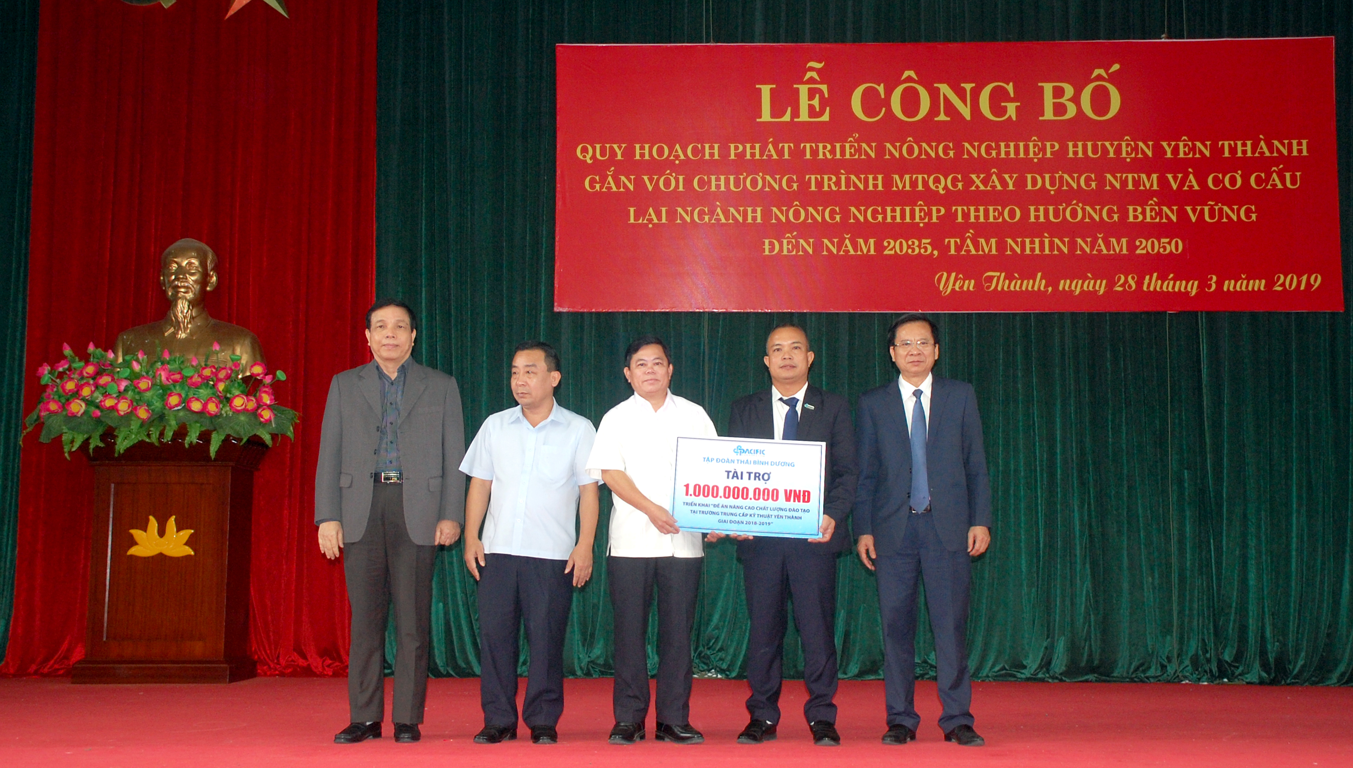 Ngày 28/3/2019, tại Trung tâm Hội nghị huyện Yên Thành, UBND huyện Yên Thành, tỉnh Nghệ An đã tổ chức Hội nghị công bố Quy hoạch phát triển nông nghiệp huyện Yên Thành gắn với chương trình mục tiêu quốc gia xây dựng Nông thôn mới và cơ cấu lại ngành nông nghiệp theo hướng bền vững đến năm 2035, tầm nhìn đến năm 2050, Ông Phan Văn Quý, Chủ tịch HĐQT Tập đoàn Thái Bình Dương đã tham dự và phát biểu tại Hội nghị.