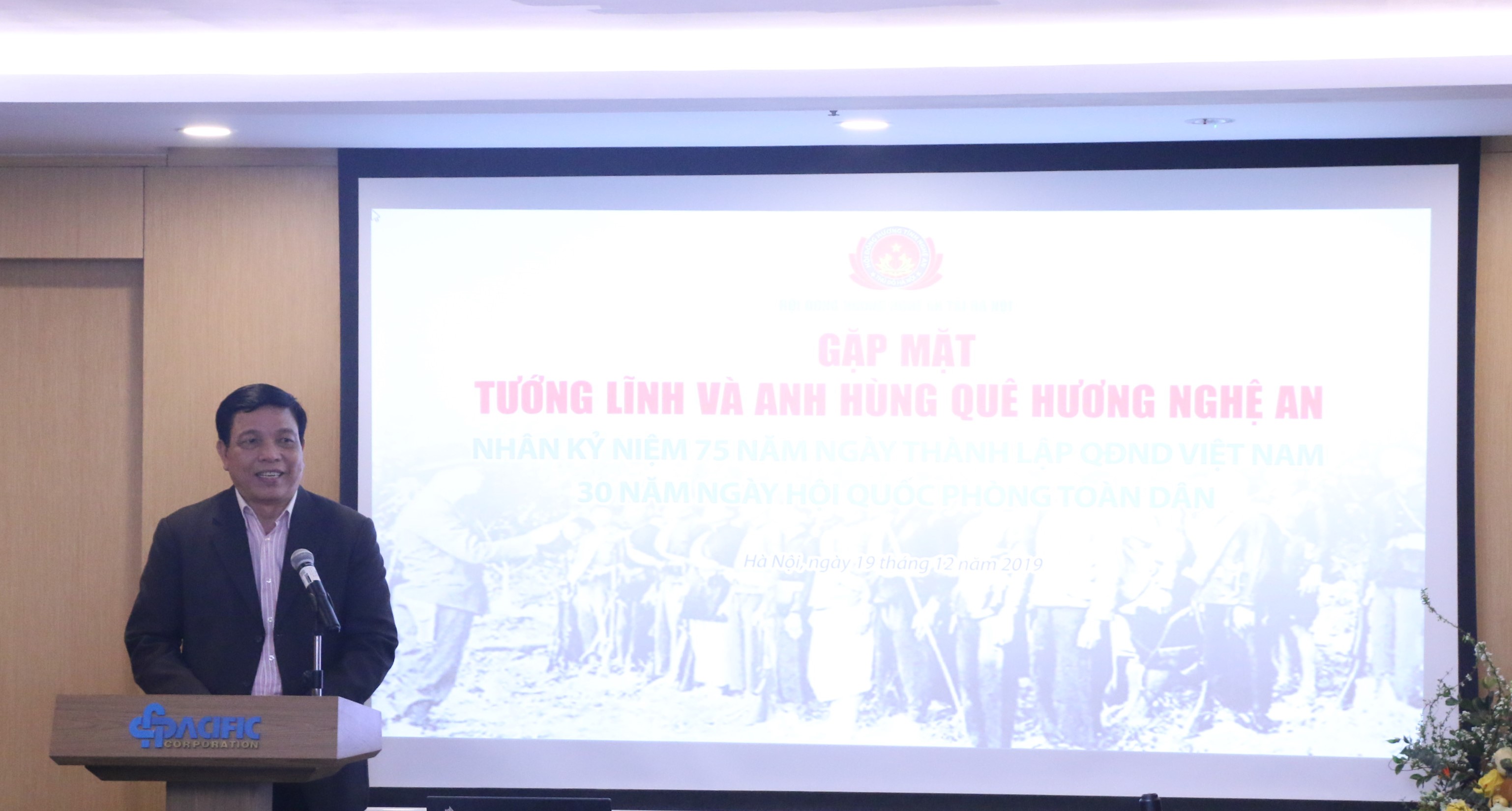 Sáng 15/12/2019, tại trụ sở Công ty cổ phần Tập đoàn Thái Bình Dương, Hội đồng hương Nghệ An tại Hà Nội đã tổ chức gặp mặt các Tướng lĩnh, Anh hùng nhân dịp kỷ niệm 75 năm Ngày thành lập Quân đội nhân dân Việt Nam, 30 năm Ngày hội Quốc phòng Toàn dân.