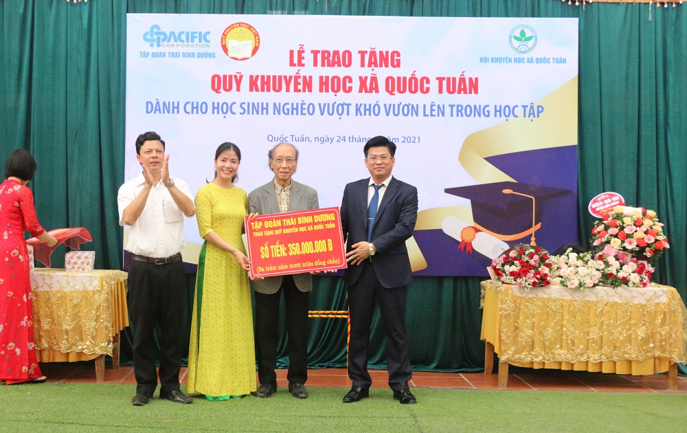 Although Quoc Tuan commune is a poor locality, it has a tradition of studiousness. Quoc Tuan Commune Study Promotion Fund operates with the task of developing the educational career in the commune, taking care of growing people career, and building the commune to develop quickly and sustainably. At the event, Quoc Tuan Commune Study Promotion Fund had expressed gratitude to Pacific Corporation and pledged to use the fund effectively for the right purposes.