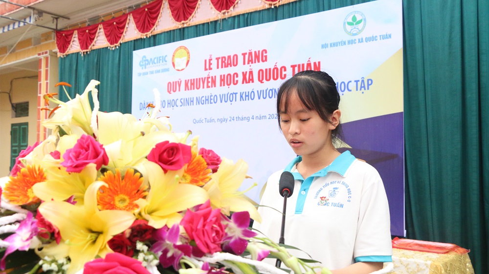 Speaking at the ceremony, Mr. Nghiem Xuan Hung - General Director of Interior Division of Pacific Corporation said: “Through this activity, Pacific Group wishes to partially help and encourage the learning spirit of the students. Hoping that they will continue to promote the tradition of studiousness in Quoc Tuan's homeland, become useful citizens, continue to devote and contribute talents to the country in the future”.