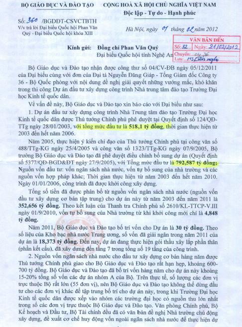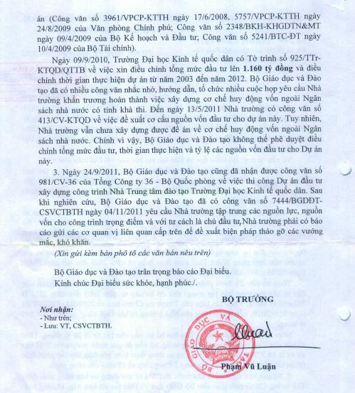 Đề nghị giải quyết vướng mắc Dự án Nhà Trung tâm Đào tạo – Trường Đại học Kinh tế Quốc dân