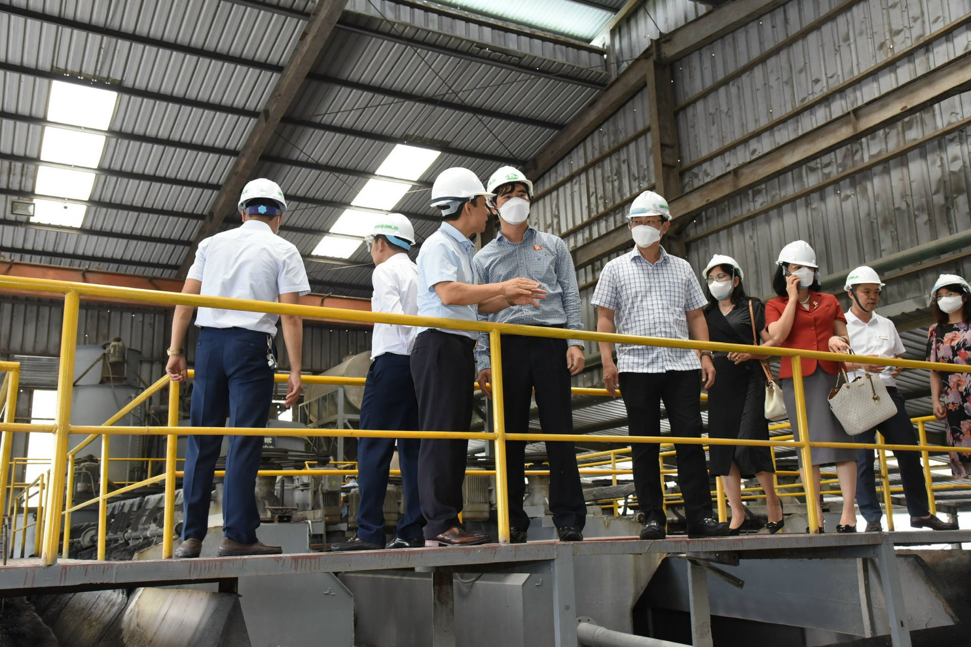 Bí thư Tỉnh ủy - Trưởng Đoàn ĐBQH tỉnh Dương Văn An cùng các thành viên trong đoàn đã đi thăm, khảo sát dây chuyền sản xuất tro bay từ tro xỉ phế thải của Nhà máy; thăm nhà mẫu lắp ghép mẫu sử dụng tấm panel SCL.