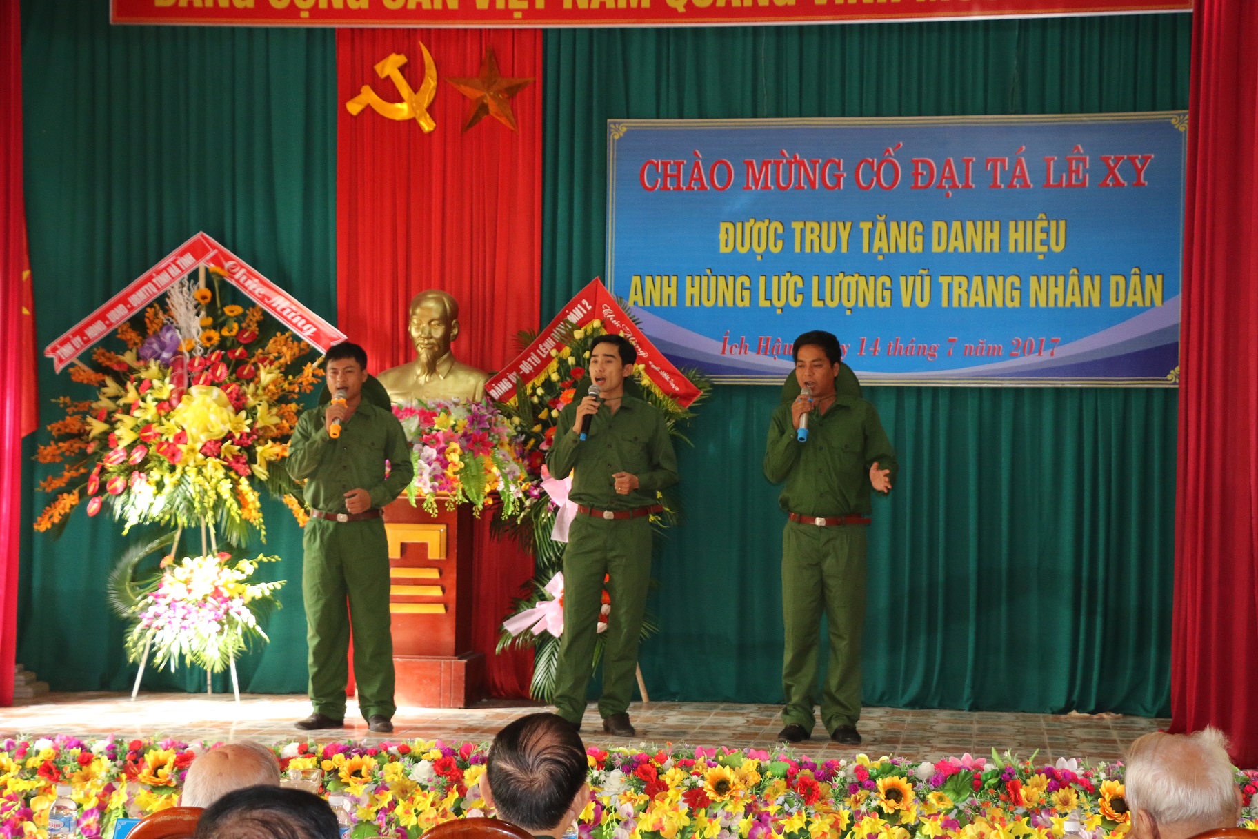 Tại Hội trường UBND xã, mở đầu lễ chào mừng là các tiết mục văn nghệ đặc sắc do Đội Văn nghệ xã Ích Hậu biểu diễn.