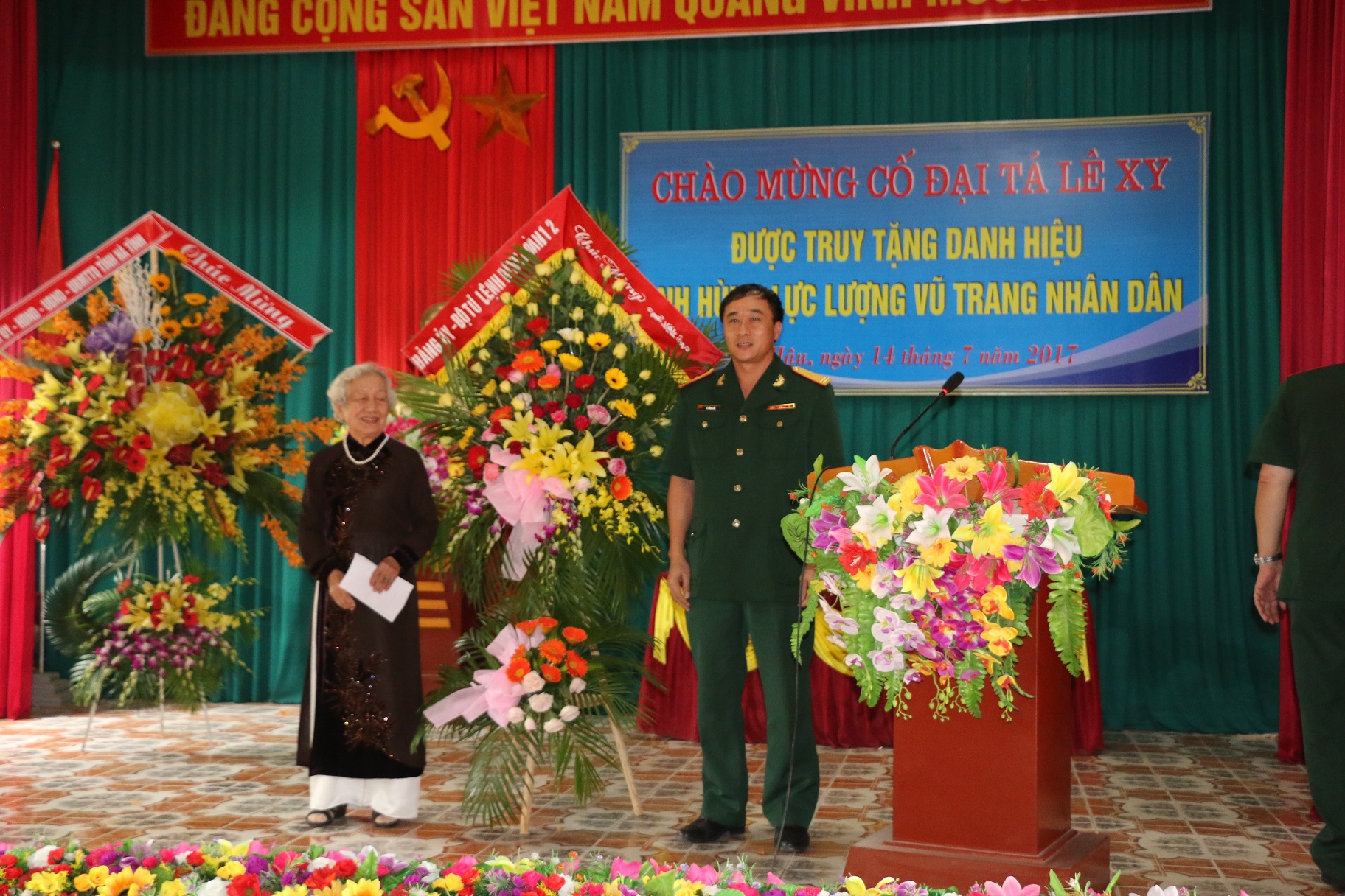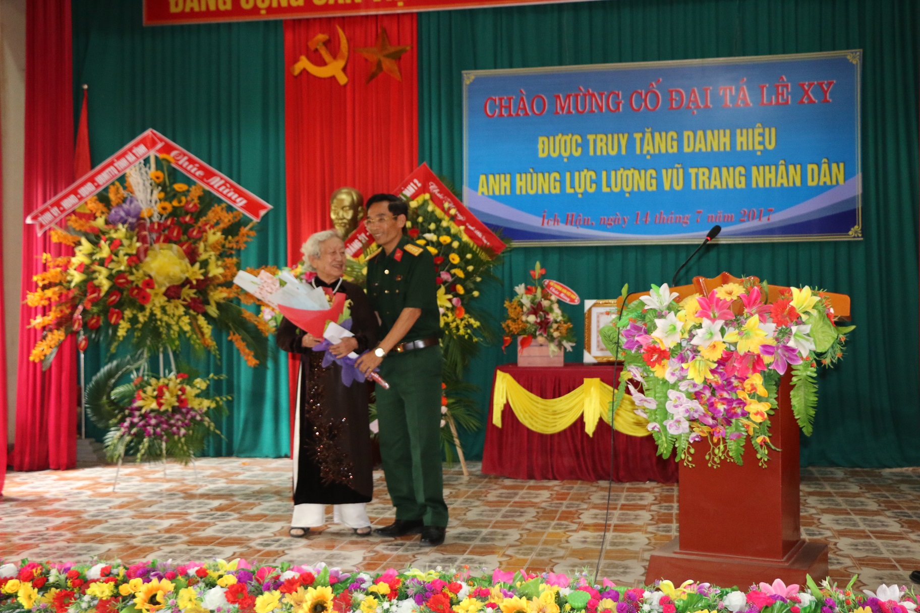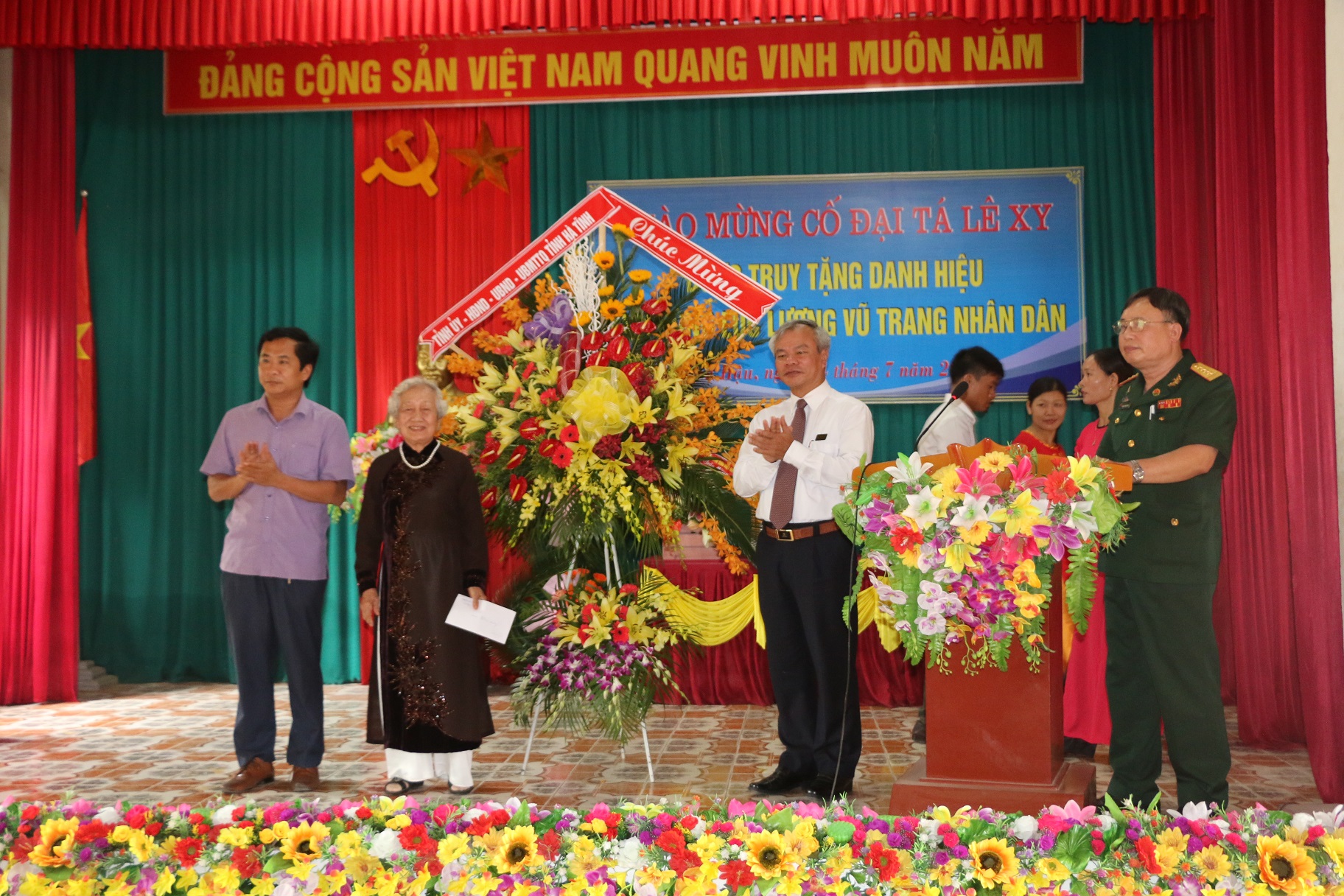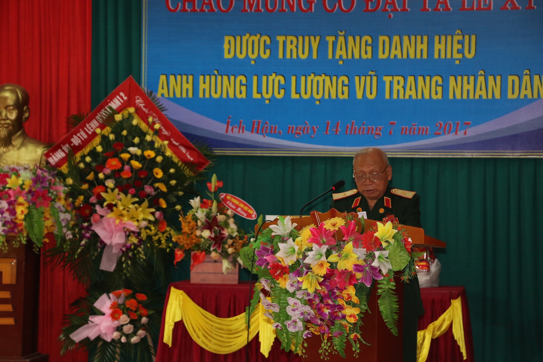 Thay mặt Lãnh đạo Hội TSVN, Thiếu tướng Võ Sở - Chủ tịch Hội đã báo cáo tóm tắt tiểu sử và thành tích của Đại tá Chính ủy Lê Xy; Đồng chí Trần Nam Hồng - Phó Bí thư Thường trực Tỉnh ủy đã phát biểu chúc mừng gia đình và địa phương, đồng thời đánh giá cao đóng góp của quân dân cả nước đặc biệt là Bộ đội Trường Sơn và các Anh hùng liệt sỹ, người có công đã cống hiến vì độc lập tư do của Tổ quốc, đồng chí Phó Bí thư Tỉnh ủy yêu cầu các cấp Hội và cán bộ, Đảng viên, nhân dân trong tỉnh nhất là thế hệ trẻ học tập noi gương để cống hiến xây dựng và bảo vệ Tổ quốc, xây dựng quê hương giàu đẹp, đô thị văn minh, làm tốt chính sách đền ơn đáp nghĩa đối với những người có công..:
