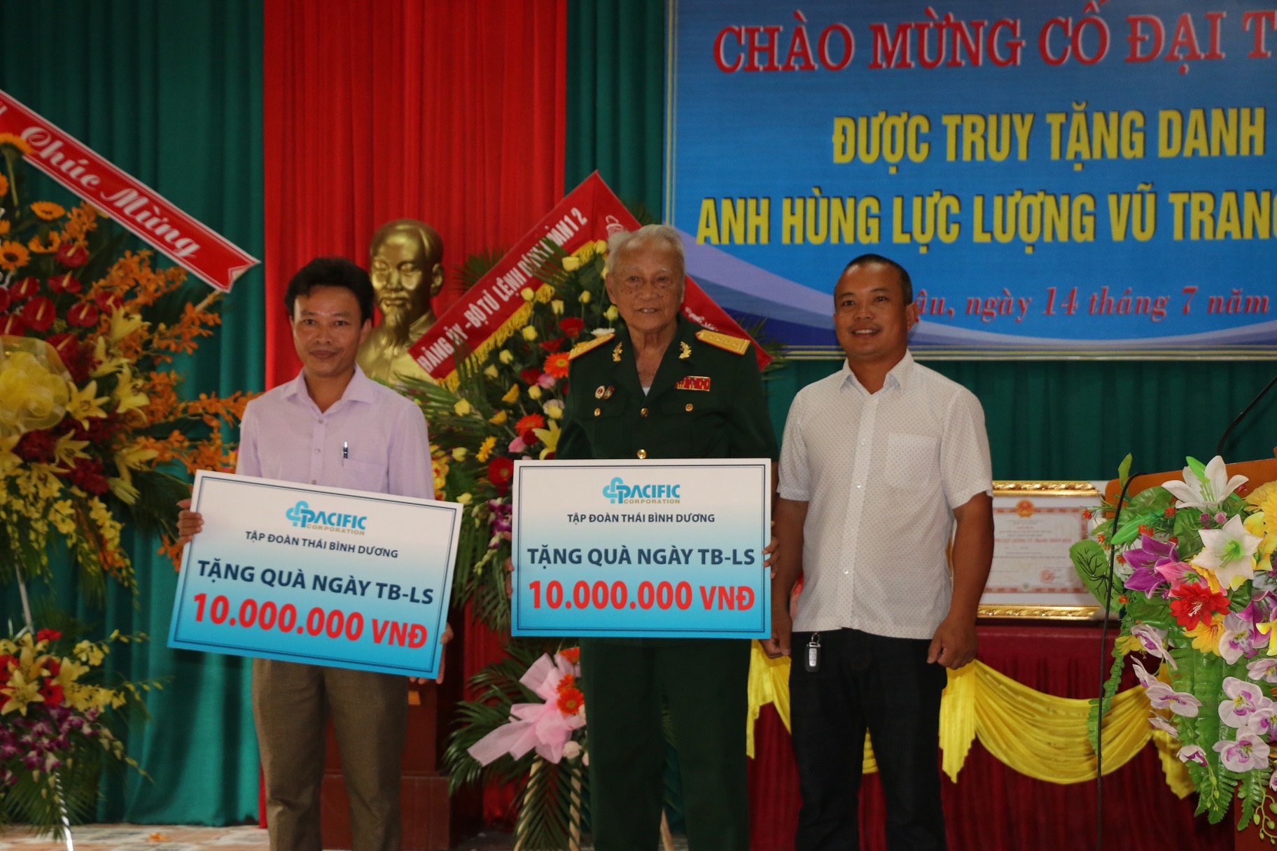 Tại đây, Công ty CP Tập đoàn Thái Bình Dương một doanh nghiệp làm kinh tế nhưng tích cực hoạt động tình nghĩa, chăm lo an sinh xã hội. Nhiều năm qua Cán bộ, CNV Tập đoàn đã đồng hành cùng Hội Trường Sơn Việt Nam tài trợ tri ân và hoạt động nhiều chương trình tình nghĩa, thay mặt Tập đoàn đồng chí Trần Trọng Phong đã trao 20 triệu đồng, trong đó tặng xã Ích Hậu 10 triệu đồng để xã tặng CCB và các đối tượng Chính sách. Tặng 10 triệu đồng cho Hội Trường Sơn tỉnh Hà Tĩnh để Hội tặng Hội viên Trường Sơn nghèo, khó khăn.