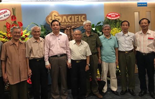 Các CCB Hội Truyền thống Trường Sơn-Đường Hồ Chí Minh Việt Nam chúc mừng đồng đội, Anh hùng lái xe Trường Sơn Phan Văn Quý, Chủ tịch HĐQT Công ty cổ phần tập đoàn Thái Bình Dương (thứ 3, từ trái sang).