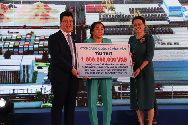 Công ty CP Cảng quốc tế Vĩnh Tân trao tặng 1 tỉ đồng cho Hội Phụ nữ xã Vĩnh Tân làm kinh tế