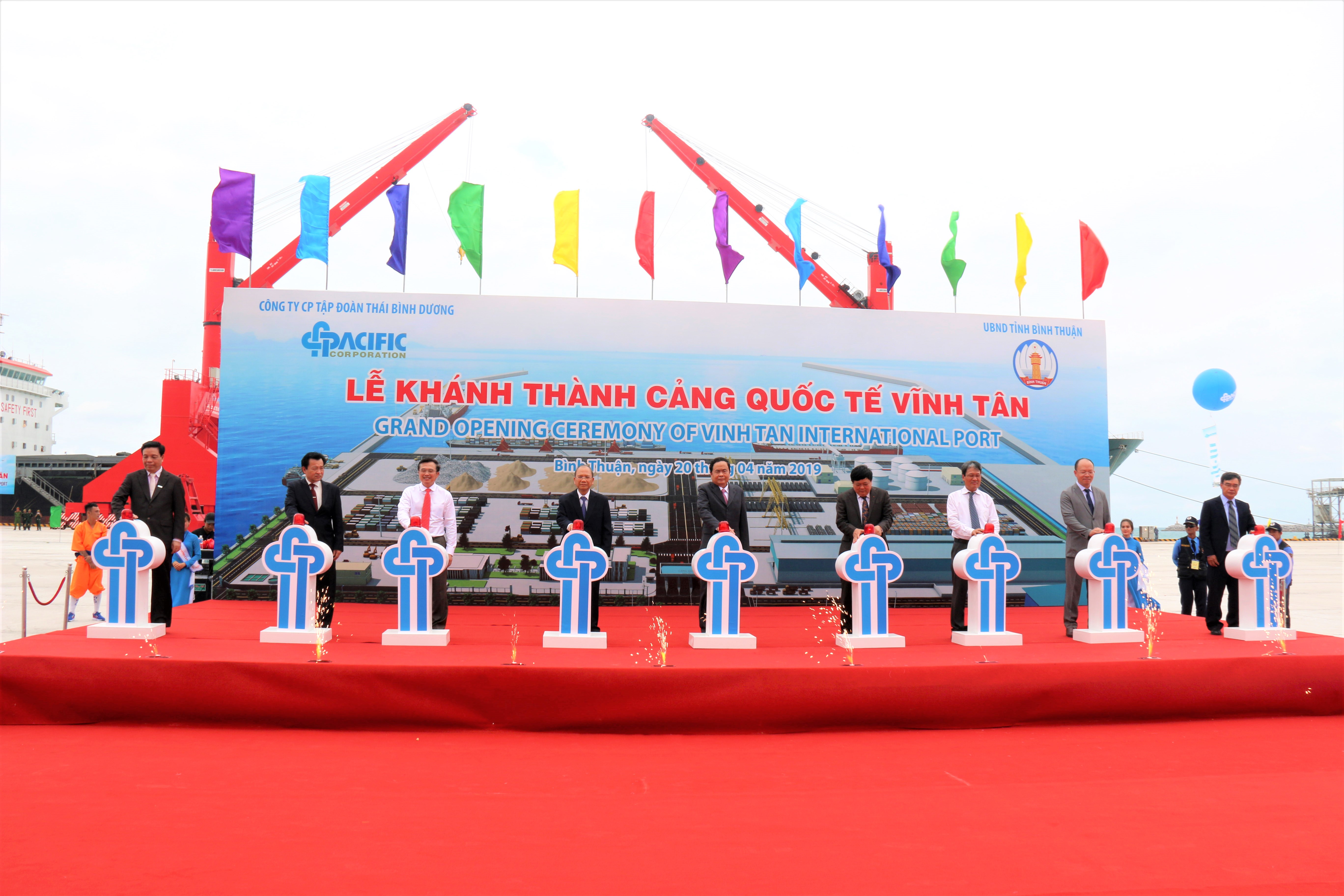 Sáng 20/4, UBND tỉnh Bình Thuận và Công ty CP Tập đoàn Thái Bình Dương tổ chức khánh thành Cảng biển quốc tế Vĩnh Tân tại xã Vĩnh Tân, huyện Tuy Phong sau 4 năm thi công.