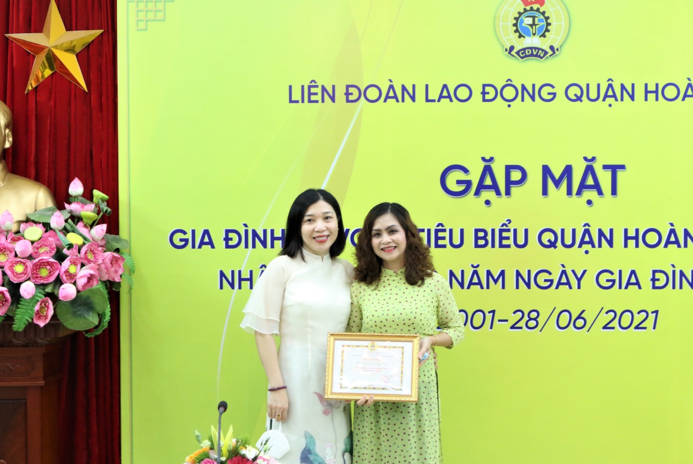 LĐLĐ quận Hoàn Kiếm tặng Giấy chứng nhận Gia đình CNVCLĐ tiêu biểu năm 2021