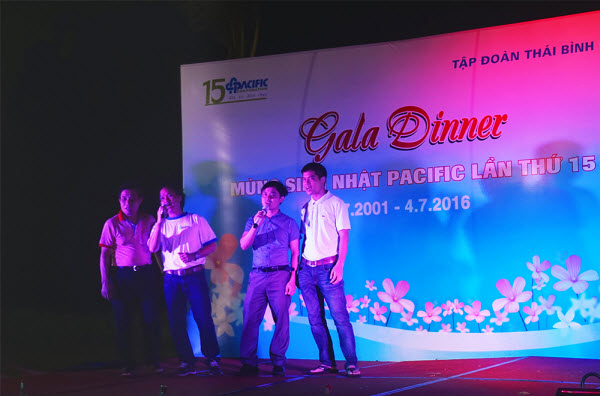 Buổi tối cùng ngày, Công ty và Công đoàn phối hợp tổ chức chương trình “Gala Dinner mừng sinh nhật Pacific lần thứ 15”. Mở màn cho đêm Gala là tiết mục hát mừng sinh nhật Pacific với sự thể hiện của top nam nữ cán bộ nhân viên trẻ của Tập đoàn, cùng các bé thiếu nhi là con của cán bộ nhân viên Tập đoàn. Tiếp đó là các tiết mục game show, giao lưu văn nghệ hết sức vui nhộn và hấp dẫn của cán bộ nhân viên Tập đoàn, các bé thiếu nhi và khách mời của Tập đoàn.