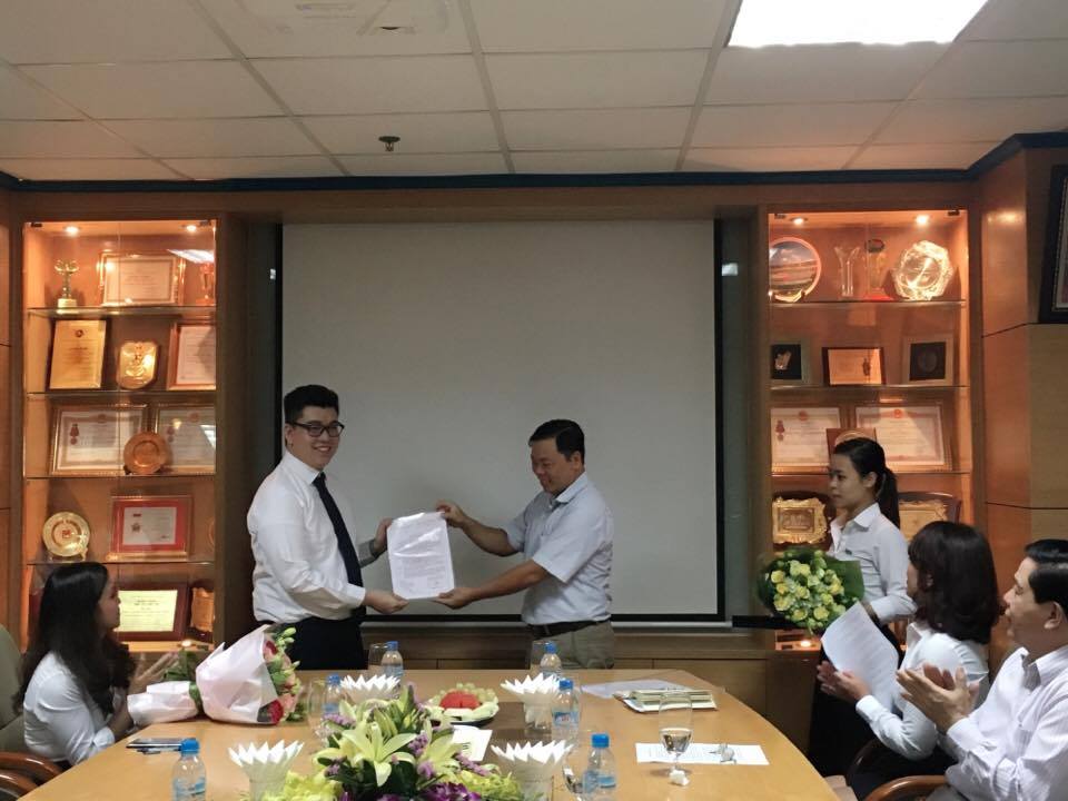 Đồng chí Nguyễn Văn Anh trao Quyết định kết nạp đảng viên cho đồng chí Phan Lê Hoàng