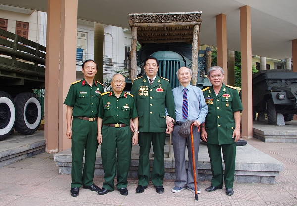 Anh hùng LLVTND Phan Văn Quý chụp ảnh lưu niệm cùng thủ trưởng và các đồng chí, đồng đội.