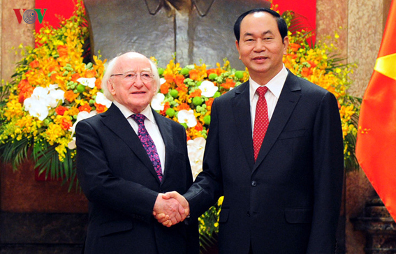 Chủ tịch nước Trần Đại Quang cảm ơn Chính phủ Ireland coi Việt Nam là đối tác ưu tiên trong chính sách hợp tác phát triển, đánh giá các dự án do Ireland tài trợ đã và đang được triển khai hiệu quả, góp phần quan trọng vào công cuộc phát triển kinh tế - xã hội và hội nhập quốc tế của Việt Nam.