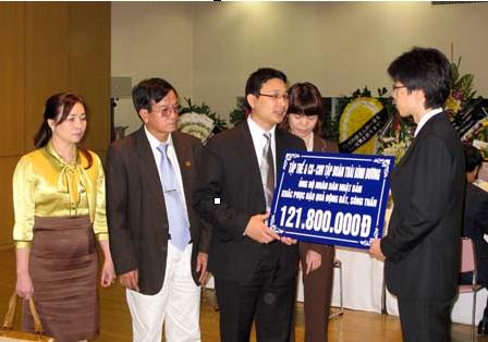 | Đại diện lãnh đạo Tập đoàn Thái Bình Dương trao tặng số tiền ủng hộ tại Sứ quán Nhật Bản tại Hà Nội |