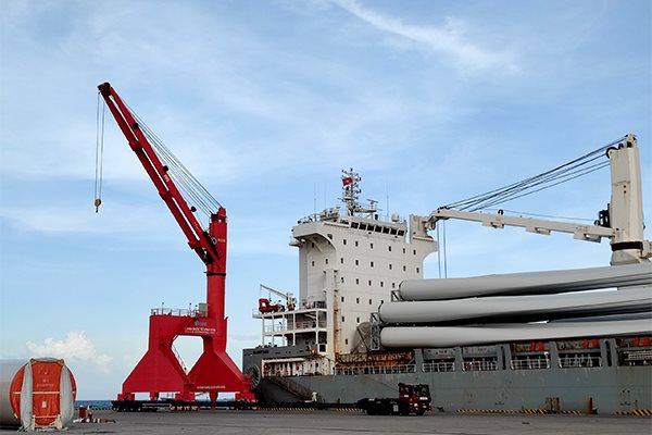 Cảng quốc tế Vĩnh Tân (Bình Thuận) hôm 7-5, đã đón tàu có tải trọng 37.000 tấn chở thiết bị điện gió phục vụ cho các dự án điện gió tại Bình Thuận. Đây là tàu quốc tế có trọng tải lớn nhất cập cảng này từ trước đến nay.