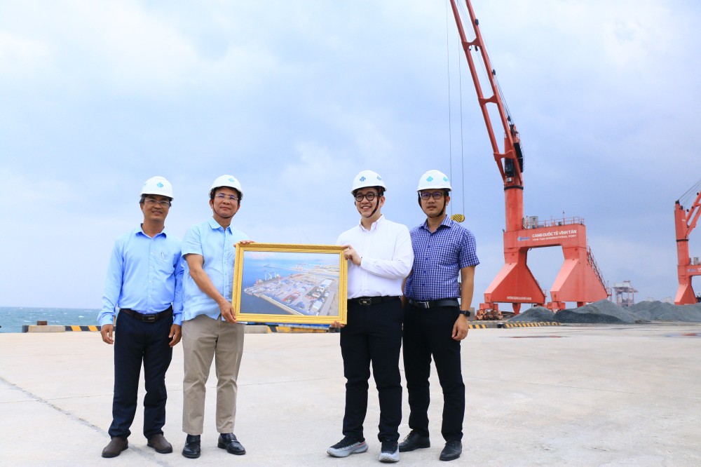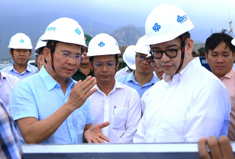 Chủ tịch UBND tỉnh Lâm Đồng Hồ Văn Mười (thứ 2 từ trái qua) và Tổng Giám đốc Tập đoàn Thái Bình Dương Phan Lê Hoàng (thứ 3 từ trái qua) tại Cảng quốc tế Vĩnh Tân