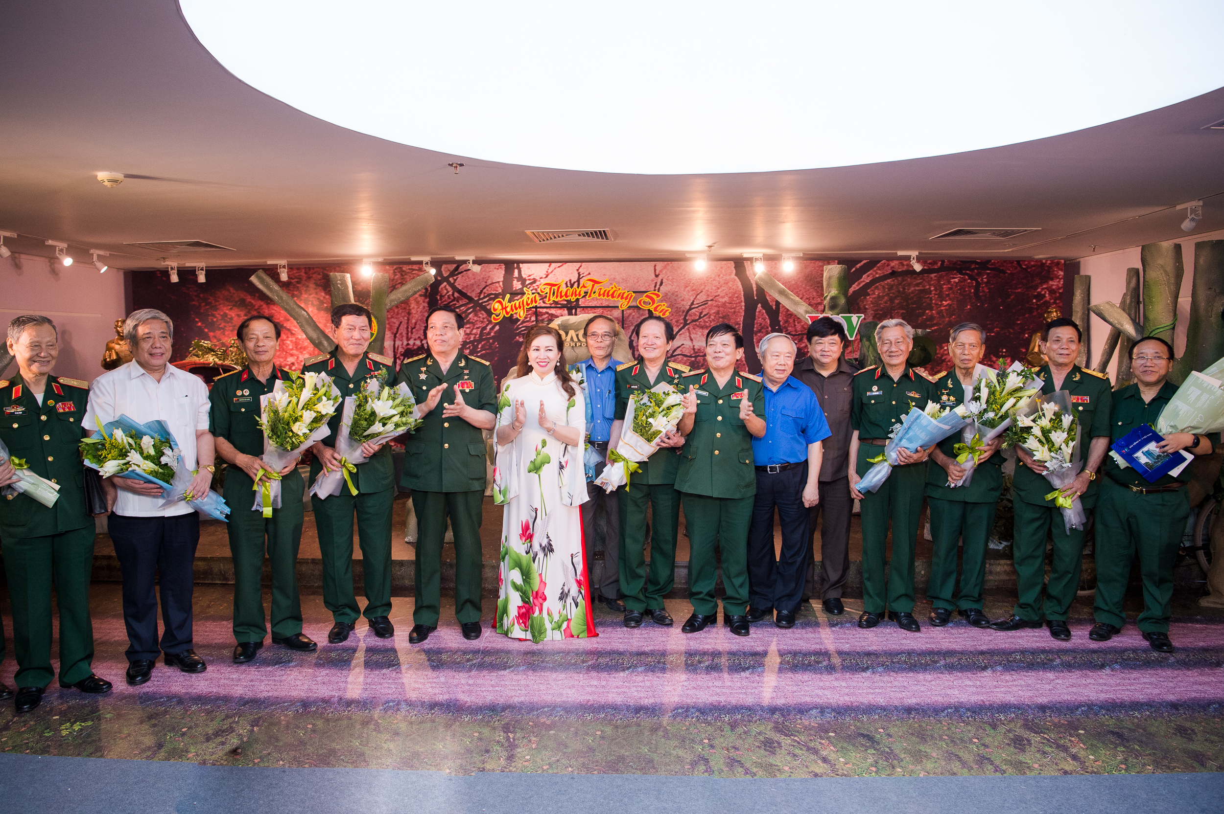 Các đại biểu, tướng lĩnh chụp ảnh lưu niệm trong Đêm thơ Huyền thoại Trường Sơn