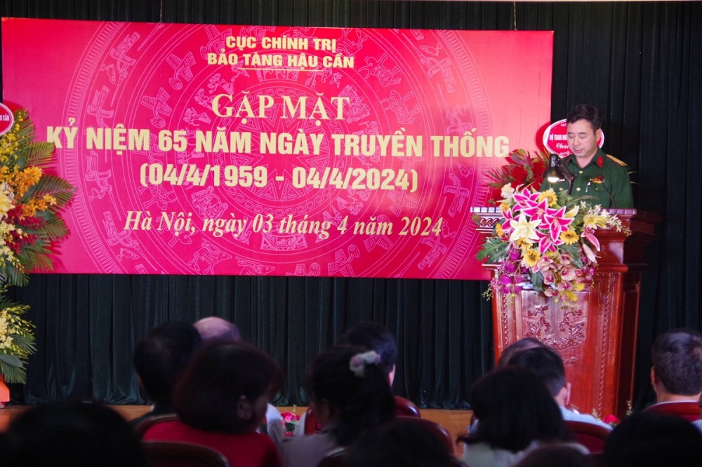 Phát biểu tại lễ gặp mặt, Thượng tá Đặng Việt Cường, Giám đốc Bảo tàng Hậu cần khẳng định: “Nhìn lại chặng đường 65 năm qua, cán bộ, nhân viên, chiến sĩ Bảo tàng Hậu cần luôn nêu cao tinh thần trách nhiệm, bền bỉ phấn đấu, vượt qua mọi khó khăn, xác định tốt chức trách, nhiệm vụ, cùng nhau đoàn kết, thống nhất, xây dựng Bảo tàng ngày một phát triển. Phát huy truyền thống và những thành tích đạt được, cán bộ, nhân viên, chiến sĩ Bảo tàng Hậu cần ra sức phấn đấu, học tập, rèn luyện, cống hiến nhiều hơn nữa, xây dựng Bảo tàng ngày càng lớn mạnh, phát triển, xứng đáng là nơi lưu giữ và phát huy giá trị di sản văn hóa quân sự nói chung, ngành Hậu cần Quân đội nói riêng, đáp ứng yêu cầu nhiệm vụ trong tình hình mới.”
