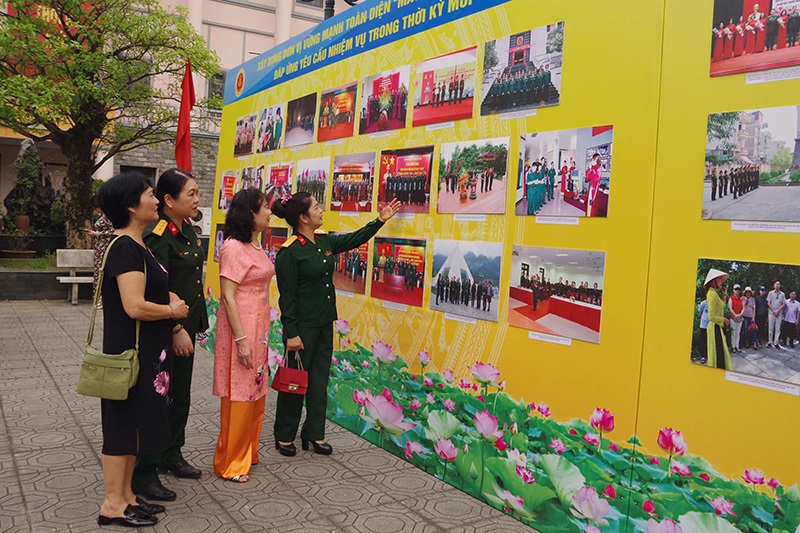 Các đại biểu tham quan triển lãm ảnh 65 năm Bảo tàng Hậu cần.