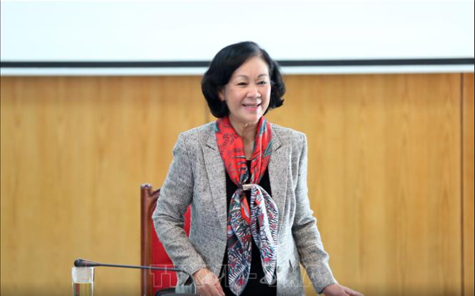 Trưởng Ban Dân vận Trung ương, Chủ tịch Hội Hữu nghị Việt Nam - Cuba Trương Thị Mai phát biểu
