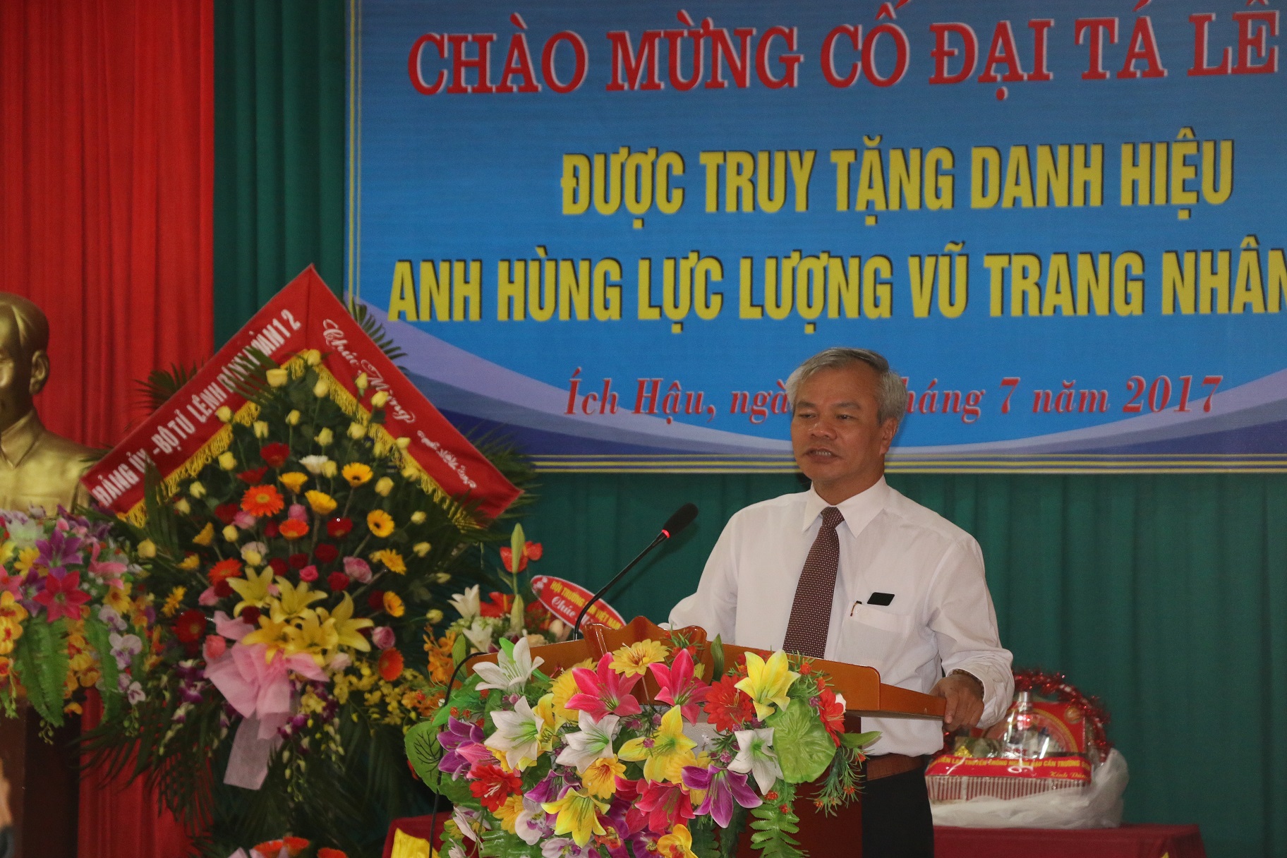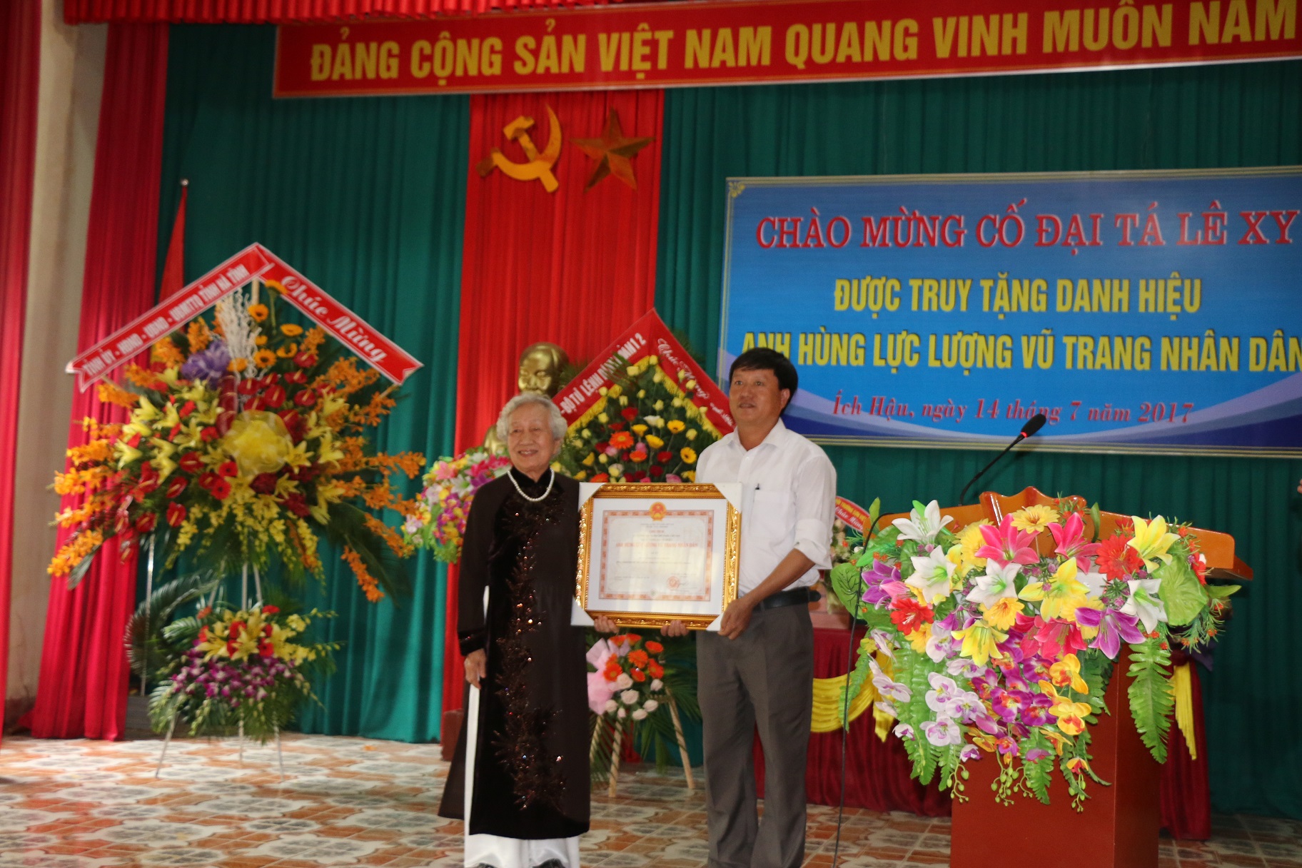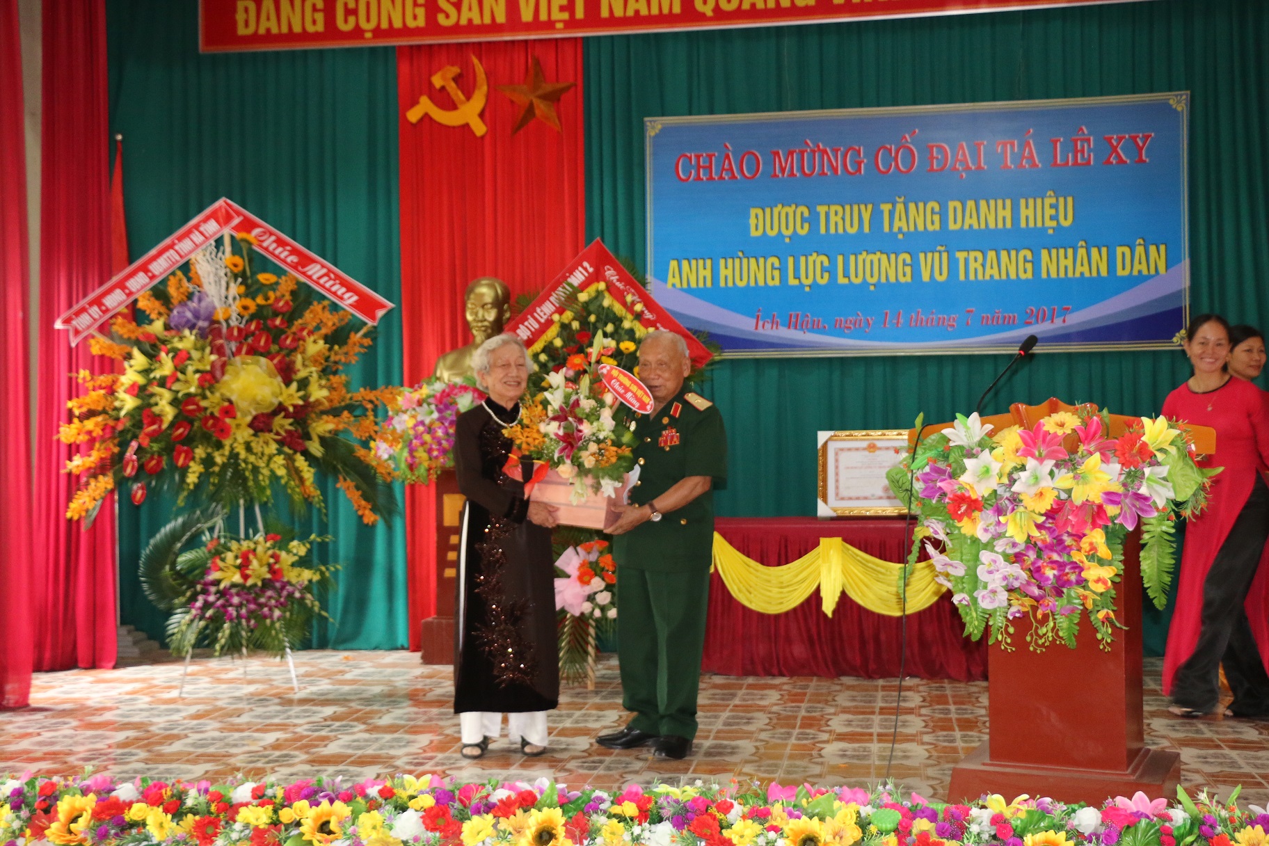 - Đại biểu gia đình có bà Lê Thị Thường - Phu nhân cố Đại tá Lê Xy cùng đông đủ đại diện Dòng họ Lê và người thân từ Hà Nội, Tp. Hồ Chí Minh, Nghệ An, xã Ích Hậu và các địa phương về dự.