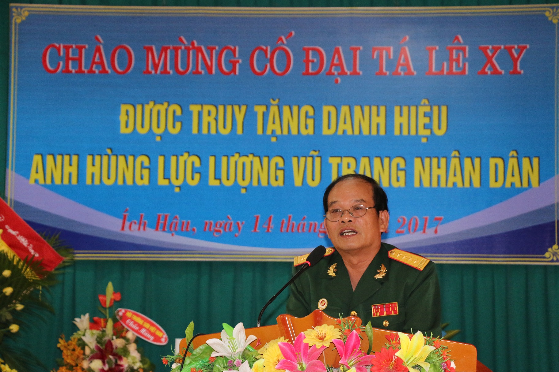 Thay mặt Lãnh đạo Hội TSVN, Thiếu tướng Võ Sở - Chủ tịch Hội đã báo cáo tóm tắt tiểu sử và thành tích của Đại tá Chính ủy Lê Xy; Đồng chí Trần Nam Hồng - Phó Bí thư Thường trực Tỉnh ủy đã phát biểu chúc mừng gia đình và địa phương, đồng thời đánh giá cao đóng góp của quân dân cả nước đặc biệt là Bộ đội Trường Sơn và các Anh hùng liệt sỹ, người có công đã cống hiến vì độc lập tư do của Tổ quốc, đồng chí Phó Bí thư Tỉnh ủy yêu cầu các cấp Hội và cán bộ, Đảng viên, nhân dân trong tỉnh nhất là thế hệ trẻ học tập noi gương để cống hiến xây dựng và bảo vệ Tổ quốc, xây dựng quê hương giàu đẹp, đô thị văn minh, làm tốt chính sách đền ơn đáp nghĩa đối với những người có công..: