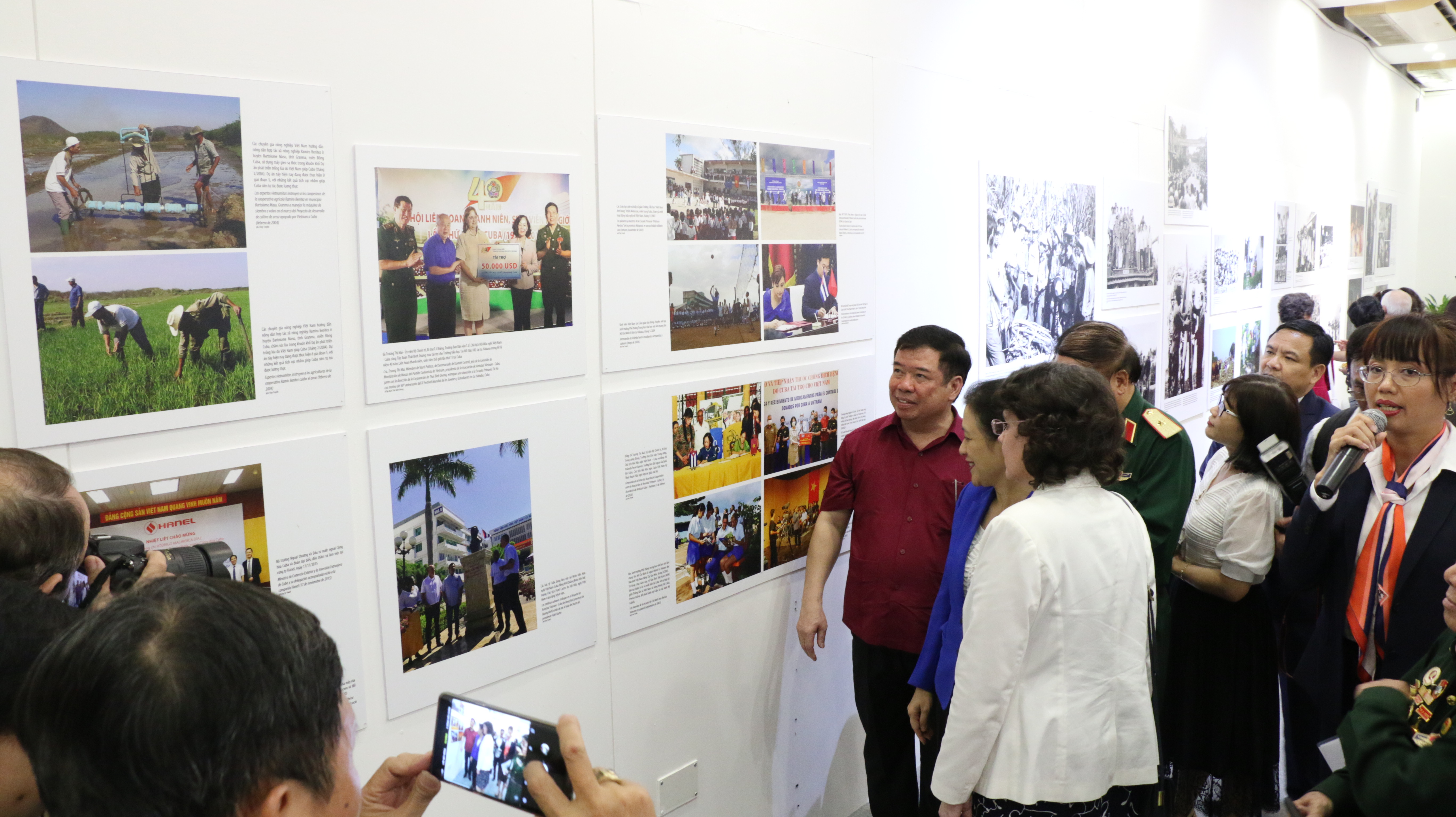 Bức ảnh Bà Trương Thị Mai - Ủy viên Bộ Chính trị, Bí thư T.Ư Đảng, Trưởng Ban Dân vận T.Ư, Chủ tịch Hội Hữu nghị Việt Nam - Cuba cùng Tập đoàn Thái Bình Dương trao tài trợ cho Trường tiểu học Tio Hồ tại La Habana trong lễ Kỷ niệm 40 năm Liên hoan thanh niên, sinh viên thế giới lần thứ 11 tại Cuba được trưng bày tại triển lãm.