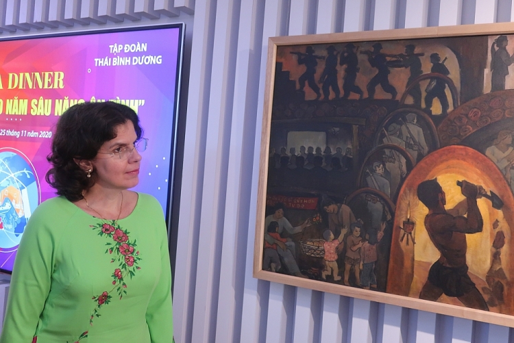 Đại sứ Lianys Torres Rivera cùng đoàn đại biểu tham quan phòng tranh tại Tập đoàn Thái Bình Dương.