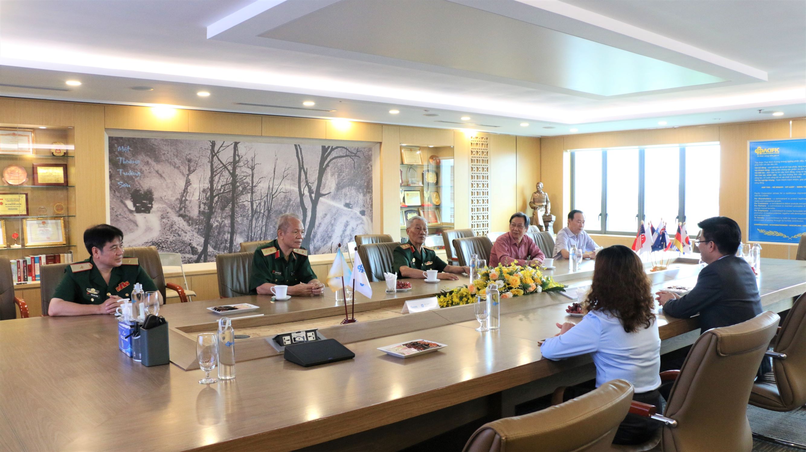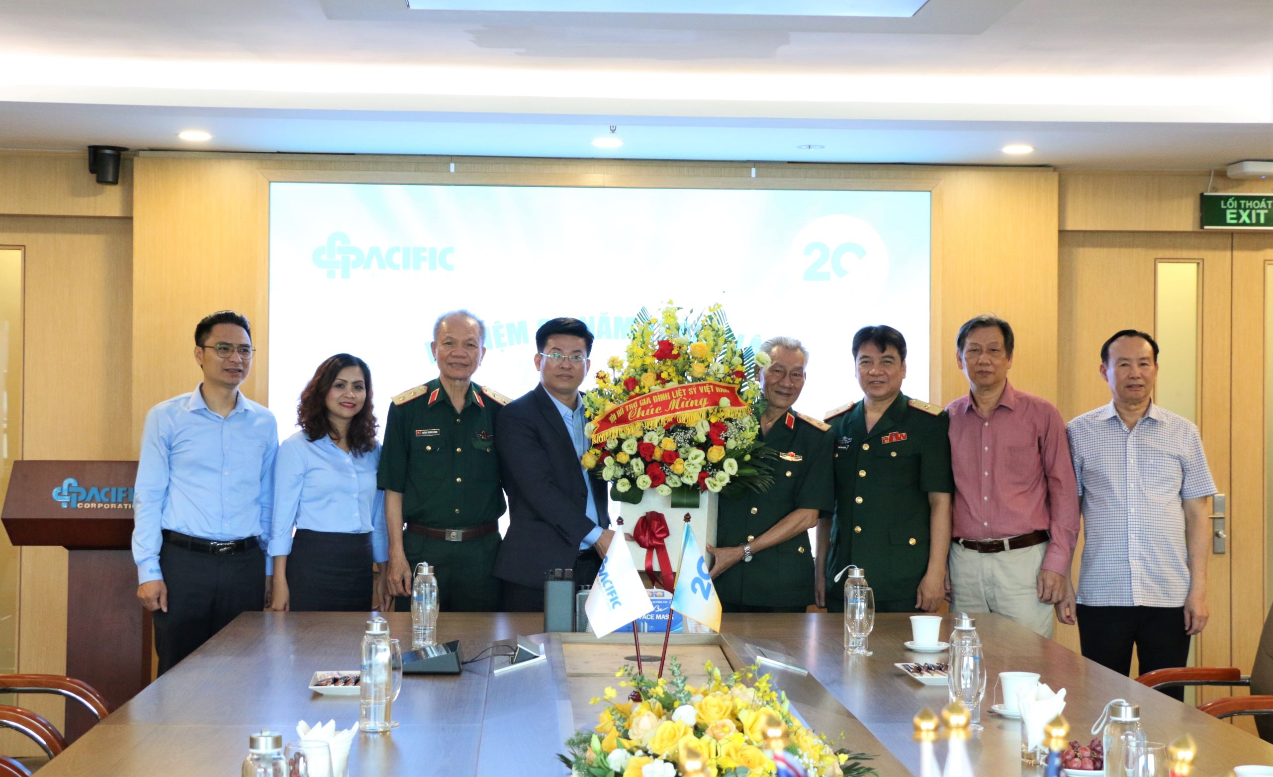 Trung tướng Lê Văn Hân, Chủ tịch Hội và đoàn cán bộ Hội HTGĐLS Việt Nam chúc mừng tập đoàn Thái Bình Dương nhân kỷ niệm 20 năm ngày thành lập