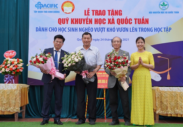 Ông Vũ Văn Thắng, Phó Bí thư Đảng bộ - Chủ tịch Ủy ban Nhân dân xã Quốc Tuấn thay mặt chính quyền và nhân dân địa phương gửi lời cảm ơn những tình cảm, sự quan tâm mà các đơn vị dành tặng xã Quốc Tuấn, ông nhấn mạnh: "Sự quan tâm của Quỹ Khuyến học Việt Nam, Tập đoàn Thái Bình Dương dành tặng địa phương là rất có ý nghĩa, món quà này trước tiên đã chia sẻ được những khó khăn trong việc xây dựng Quỹ Khuyến học của địa phương.