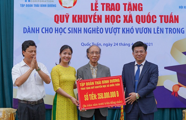 Sáng 24/4, trong không khí vui tươi, Quỹ Khuyến học Việt Nam, Tập đoàn Thái Bình Dương đã trân trọng trao tặng số tiền 350 triệu đồng giúp đỡ các em học sinh nghèo vượt khó trên quê hương anh hùng Phạm Tuân, xã Quốc Tuấn, huyện Kiến Xương, tỉnh Thái Bình.