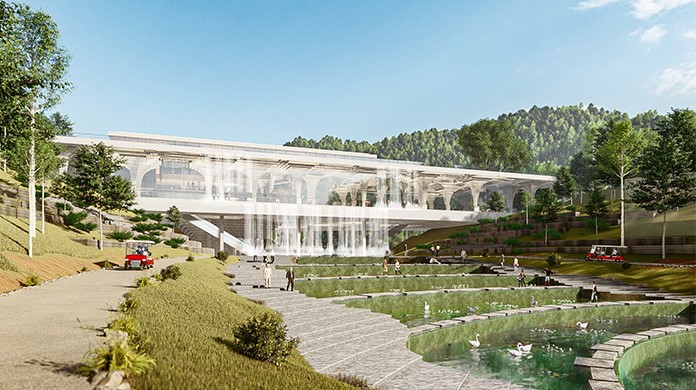 Phối cảnh nhà ga tại tuyến cáp treo Hương Bình tại huyện Lạc Thủy