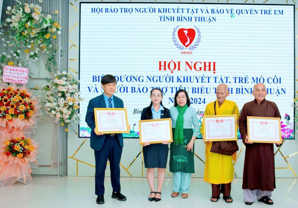 Tại hội nghị, Hội Bảo trợ Người khuyết tật và trẻ mồ côi Việt Nam tặng Bằng khen cho 08 tập thể, cá nhân có thành tích xuất sắc trong hoạt động bảo trợ người khuyết tật, trẻ mồ côi tỉnh Bình Thuận giai đoạn 2019 - 2024; 09 cá nhân có thành tích xuất sắc vượt khó vươn lên trong học tập, lao động giai đoạn 2019 - 2024.