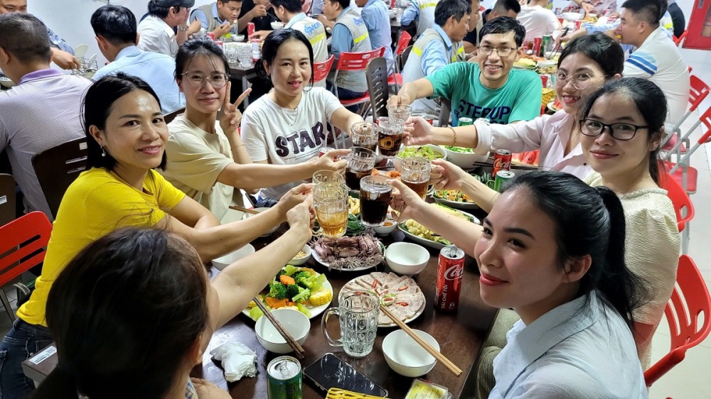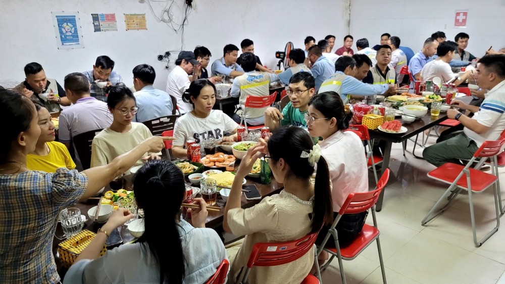 “Bữa cơm Công đoàn” là hoạt động được BCH Công đoàn phối hợp cùng Công ty tổ chức nhân Kỷ niệm 95 năm ngày thành lập Công đoàn Việt Nam. Đây là dịp để Công đoàn, Ban lãnh đạo Công ty và toàn thể đoàn viên, người lao động của Tập đoàn cùng giao lưu, chia sẻ, từ đó tăng tính gắn kết, thấu hiểu và tăng sự đoàn kết, gắn bó của đoàn viên, người lao động đối với tổ chức Công đoàn và Công ty.
