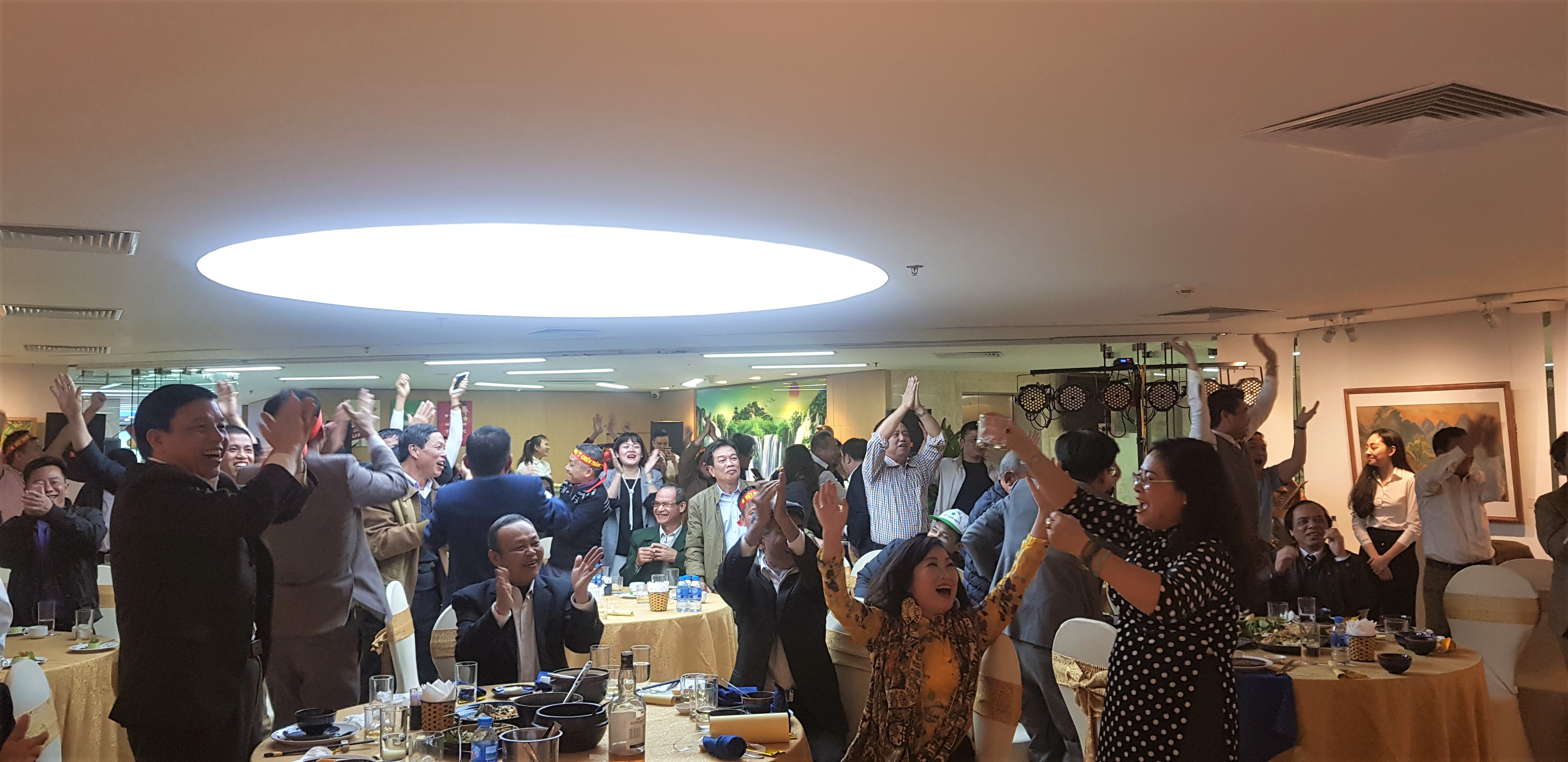 CB-NV và khách mời chúc mừng chiến thắng của đội tuyển Việt Nam