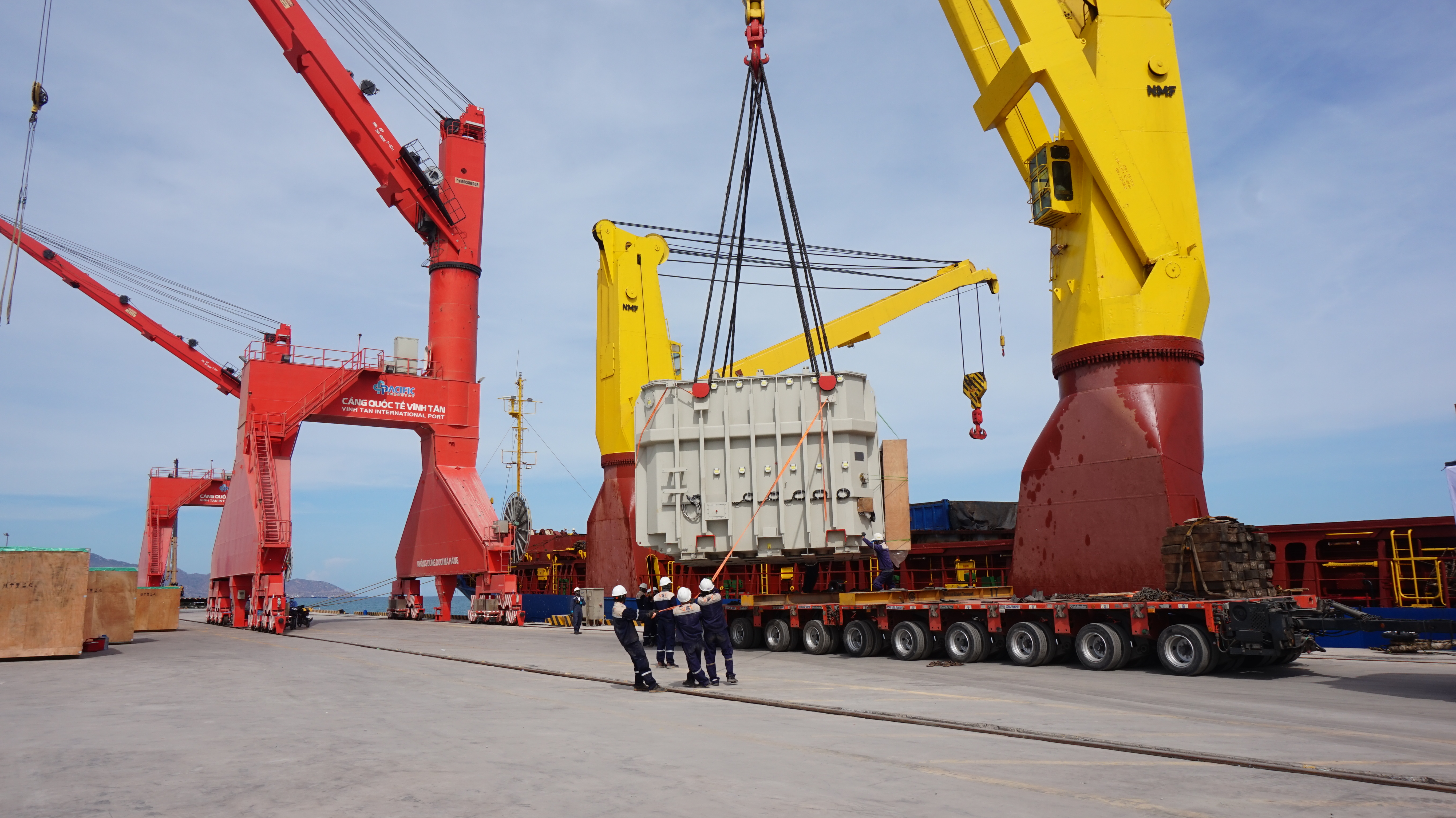 Bốc xếp hàng siêu trường, siêu trọng tại Cảng Quốc tế Vĩnh Tân