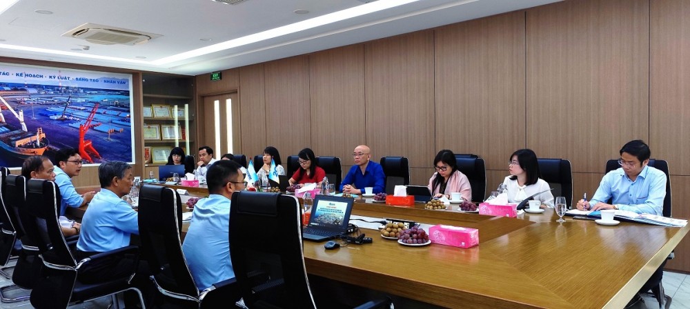 Tại buổi làm việc, Đại diện BLĐ Cảng đã báo cáo với đoàn khảo sát về tình hình phát triển logistics của Cảng Quốc tế Vĩnh Tân trong thời gian qua và định hướng quy hoạch phát triển trong thời gian sắp tới.