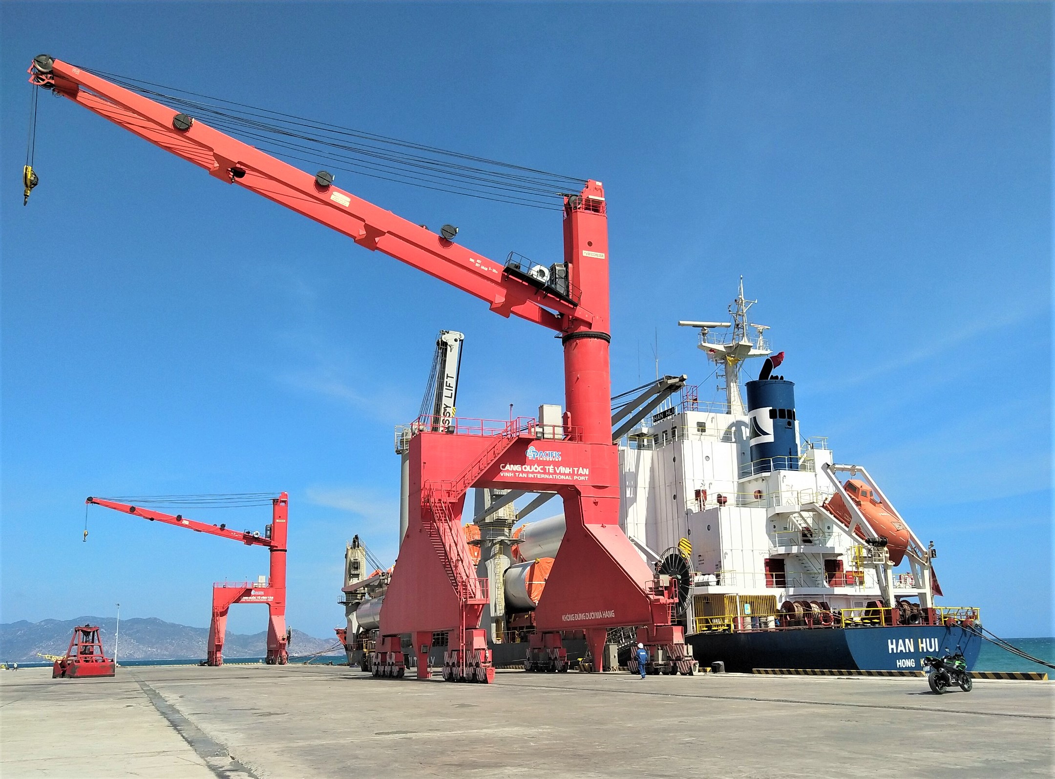 Chiều ngày 7/3/2021, Cảng Quốc tế Vĩnh Tân đã tiếp nhận tàu HAN HUI quốc tịch Hong Kong cập cảng, với tải trọng 10.358 DWT. Đây là chuyển tàu chở 4 thân trụ điện gió cho dự án BIM ở huyện Thuận Nam, tỉnh Ninh Thuận.