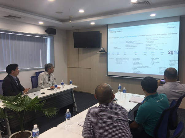 Chiều 13/8/2018, tại TP.Hồ Chí Minh, Ban lãnh đạo Cảng Vĩnh Tân cùng Trung tâm Công nghệ Gemadept – Tập đoàn Gemadept đã có buổi làm việc với Công ty Cyberlogitecs – Singapore để tìm hiểu về ứng dụng giải pháp phần mềm quản lý khai thác cảng OPUS STOWAGE do Cyberlogitec sản xuất và phát triển.