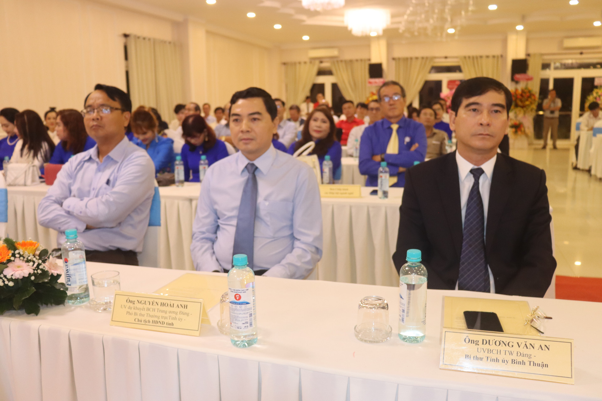 Lãnh đạo Tỉnh ủy (ảnh trên) và đại diện các Hiệp hội, doanh nghiệp dự Lễ kỷ niệm Ngày Doanh nhân Việt Nam (13/10)