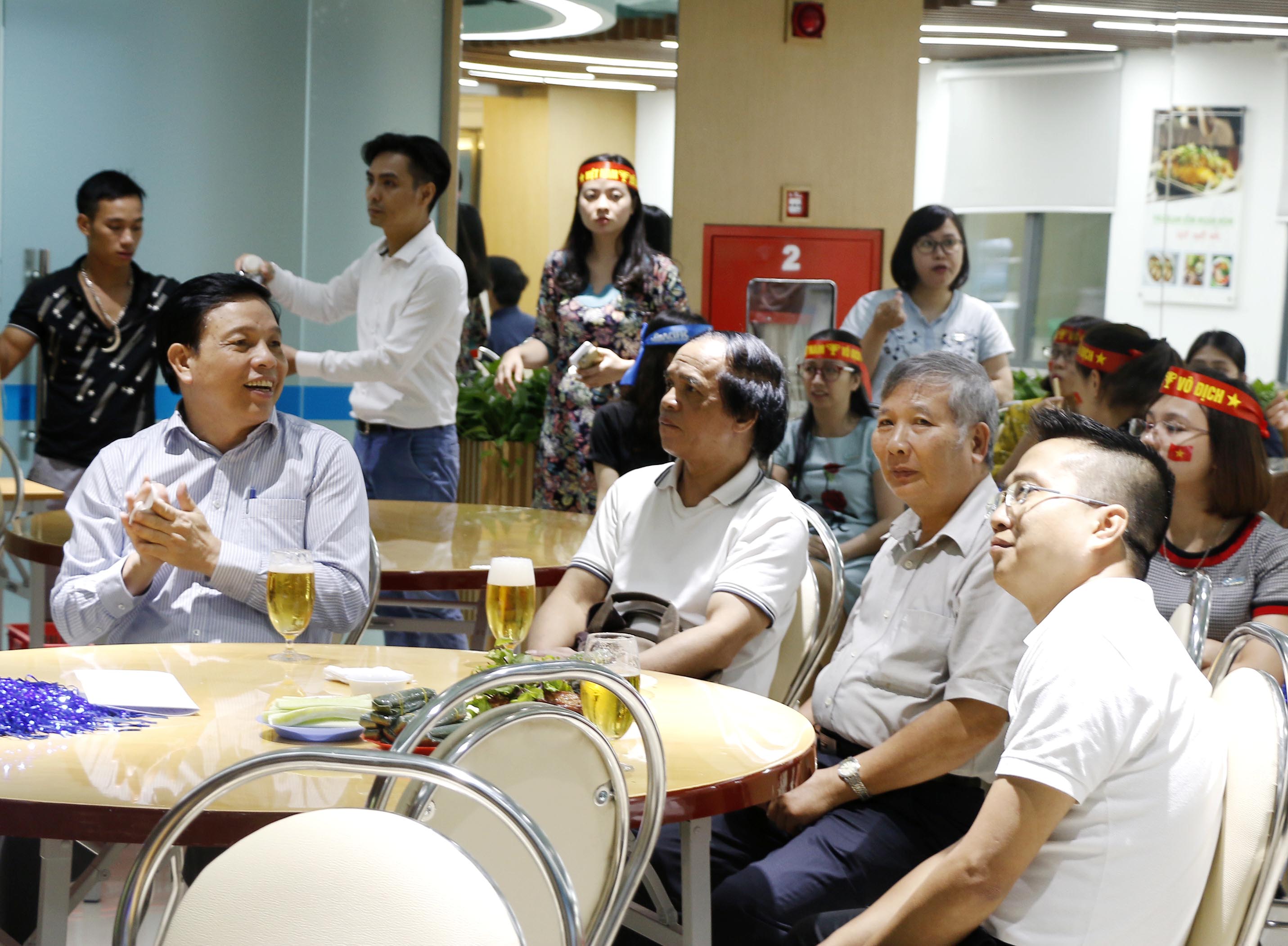 Chủ tịch HĐQT Phan Văn Quý giản dị, gần gũi trong một buổi xem và cổ vũ bóng đá cùng CB-NV Tập đoàn